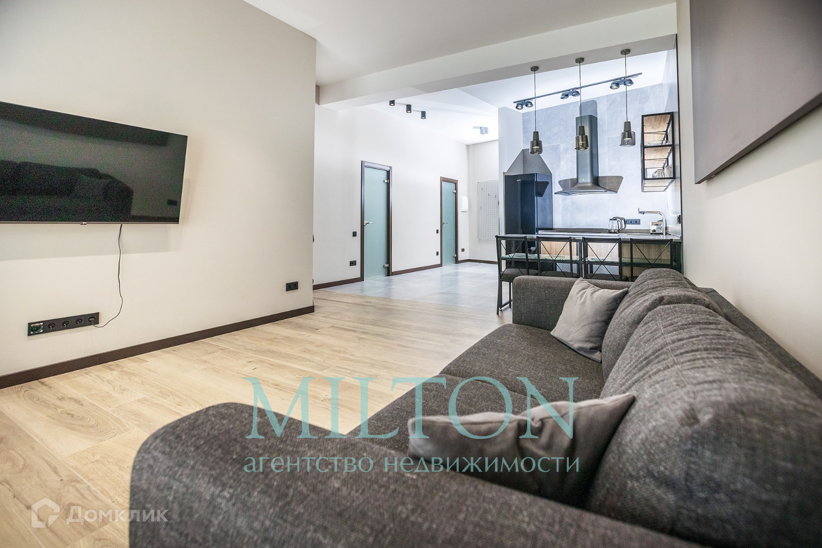 Просторная гостиная соединена с кухней.                                                                                                                                                                                                                                                  Гардеробная комната.