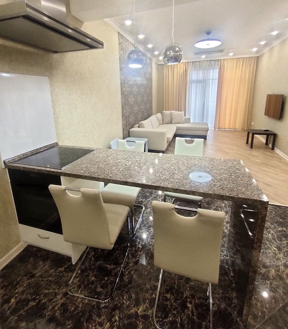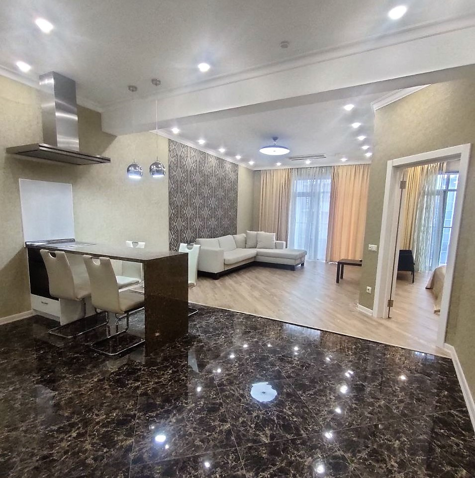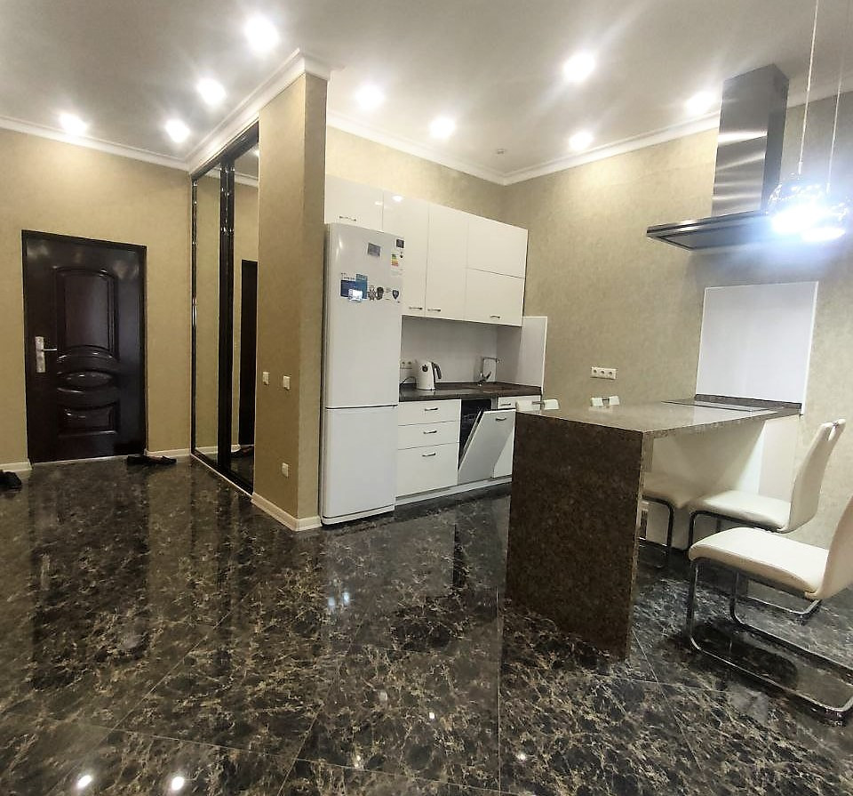 Двухкомнатная квартира в элитном ЖК "Акватория" на первой береговой линии. Жилой комплекс премиум-класса с шикарной придомовой территорией с фонтанами и экзотическими растениями.