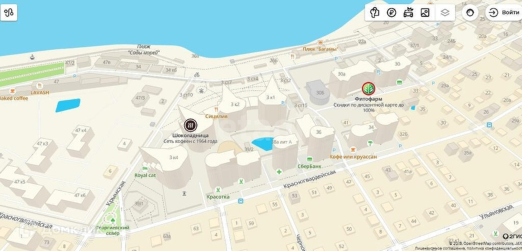Доп. описание: санузел раздельный, пластиковые окна, в доме есть: детская площадка, закрытый двор, ворота, охрана, видеонаблюдение, подземный паркинг, гостевой паркинг, лифт пассажирский, лифт грузовой, черновая отделка, также имеются: телефон, интернет, кабельное телевидение, счетчики холодной и горячей воды, домофон, железная дверь, консьерж, Номер в базе: 8210968. Район: Акватория (Курортная зона)