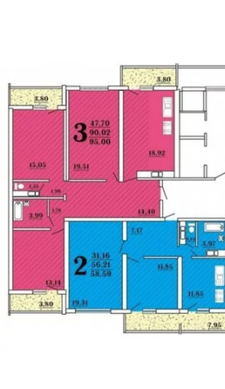 Общая площадь 90 м2