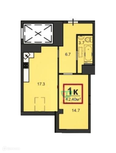 Общая площадь:42.40 м2.