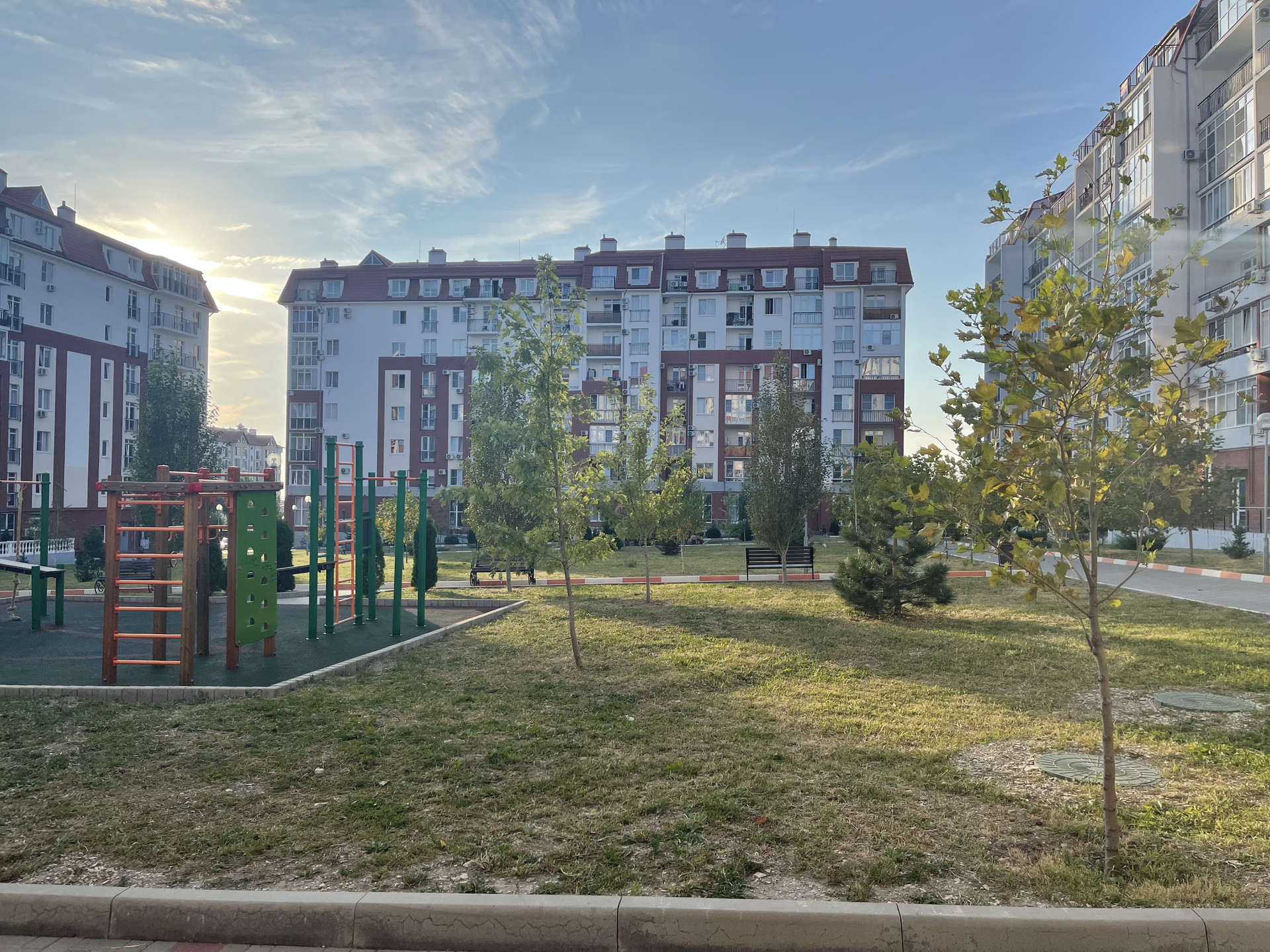 Большой, благоустроенный двор.