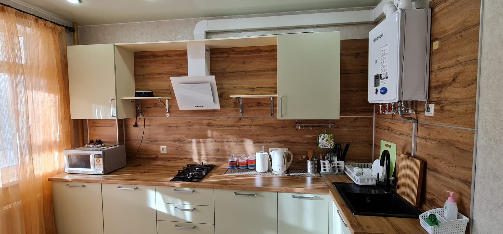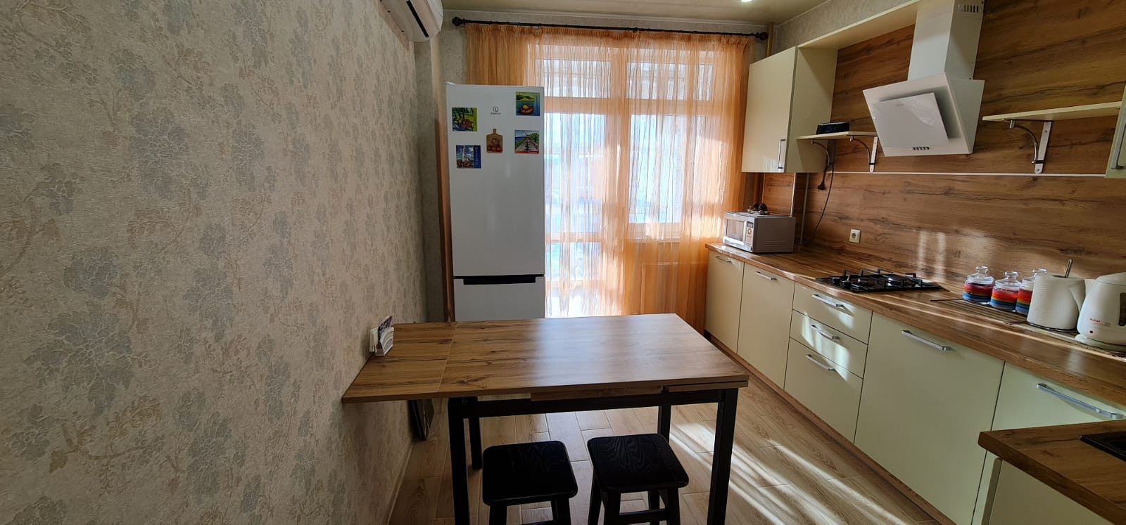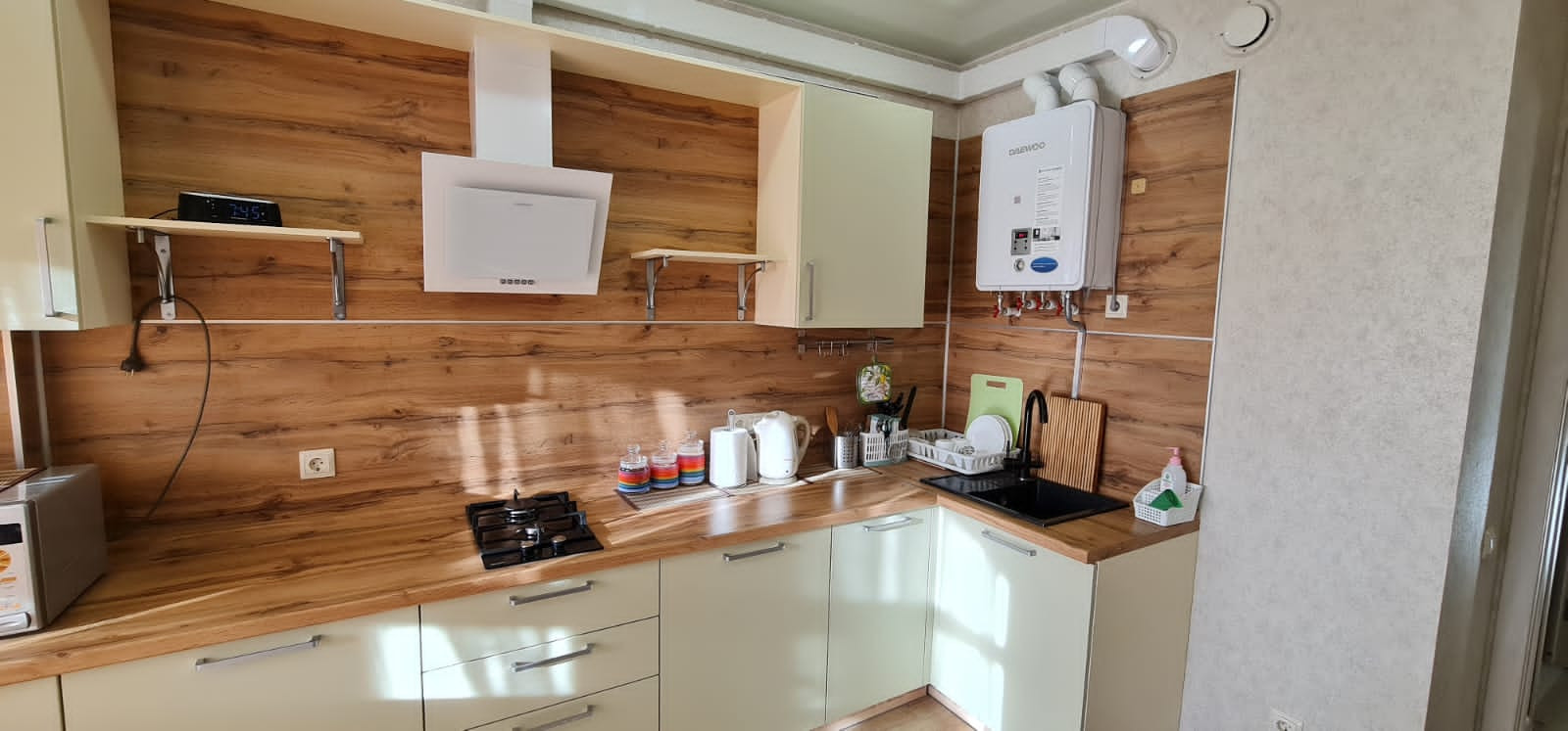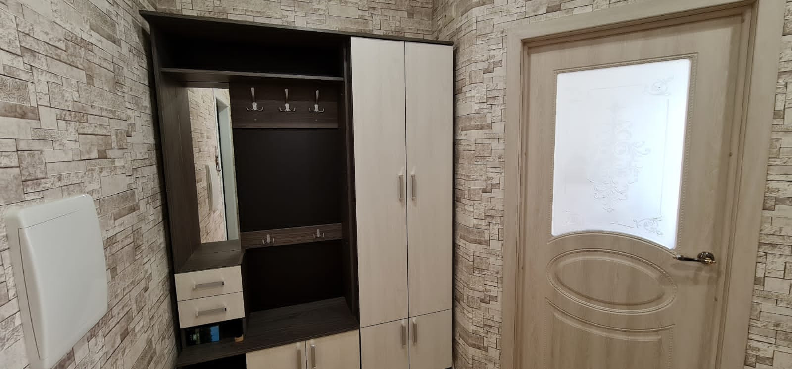 В кухне есть также место для установки телевизора (выход кабелей, сейчас закрыт обоями).