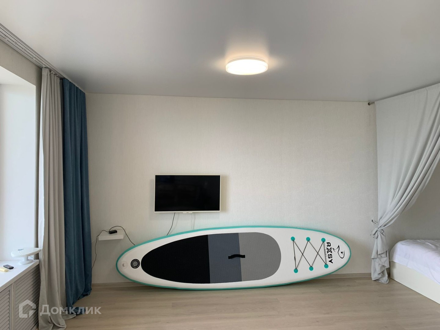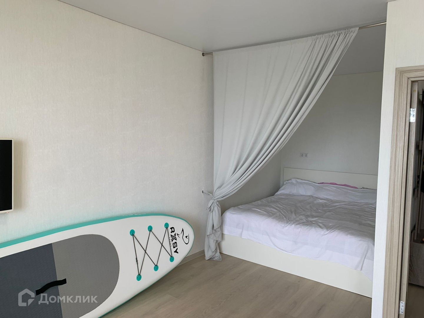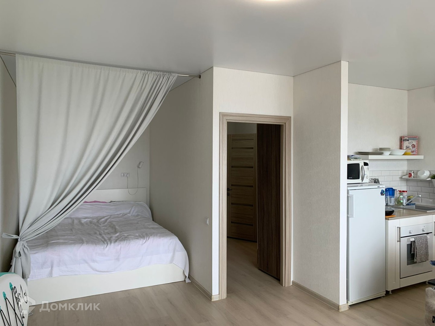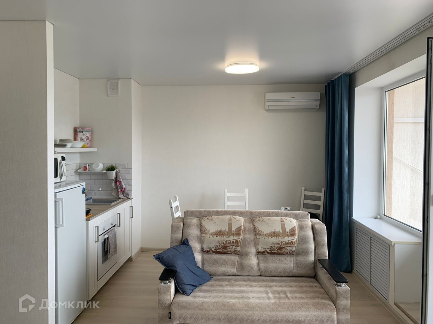 - Большая комната объединяет в себе зону кухни, столовой-гостиной, также включает в себя спальное пространство.