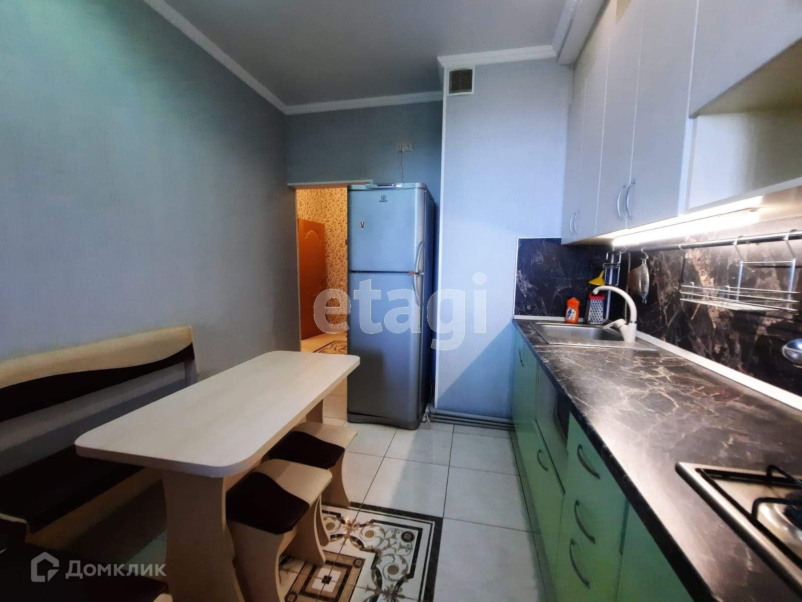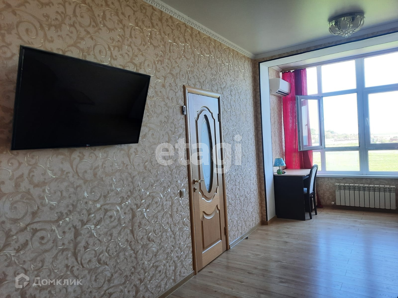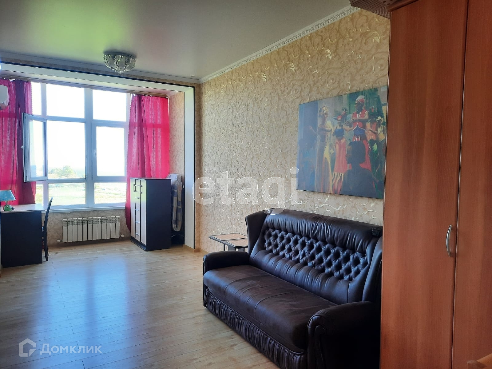 Квартира с ремонтом, мебелью, техникой — заходи и живи. Кухня-гостиная зонирована перегородкой на кухню и спальню. С незастекленного балкона открывается прекрасный вид на море и на зеленое поле На полу в комнате ламинат. В кухне, коридоре и санузле плитка и соответственно здесь пол подогревается. Имеется накопительный бак на 220-л.,Продавец все оставляет покупателю. Подходит под ипотеку и мат.капитал.