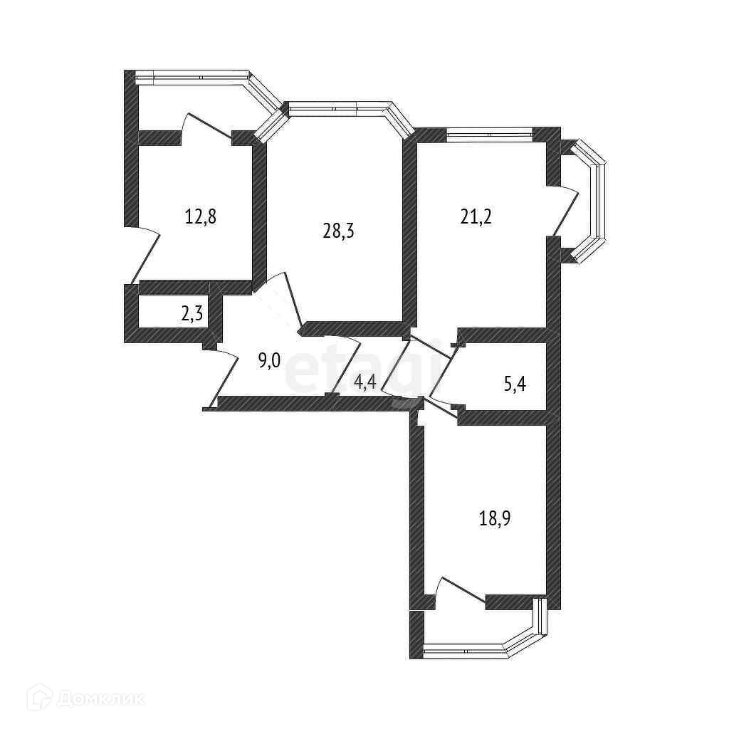 Кухня 12,8 м.кв., в кухне и в спальнях выходы на лоджию.