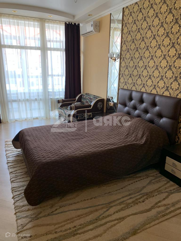 В гостевой зоне имеется раскладной диван, благодаря чему возможно увеличение спальных мест. Для комфорта в жаркую погоду в квартире установлено 2 кондиционера.
