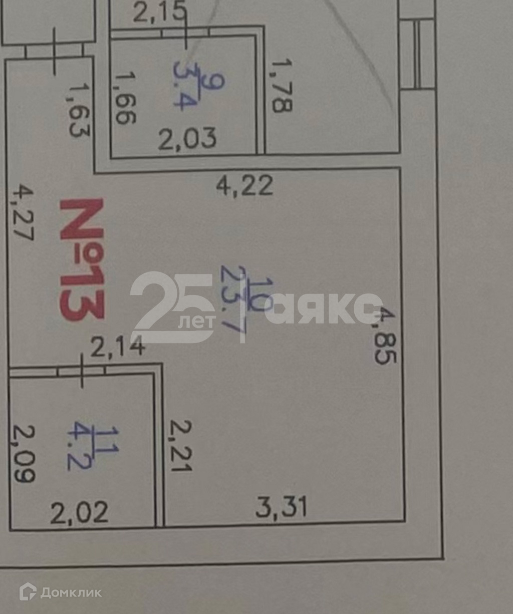 Жилая площадь 23.4 м2