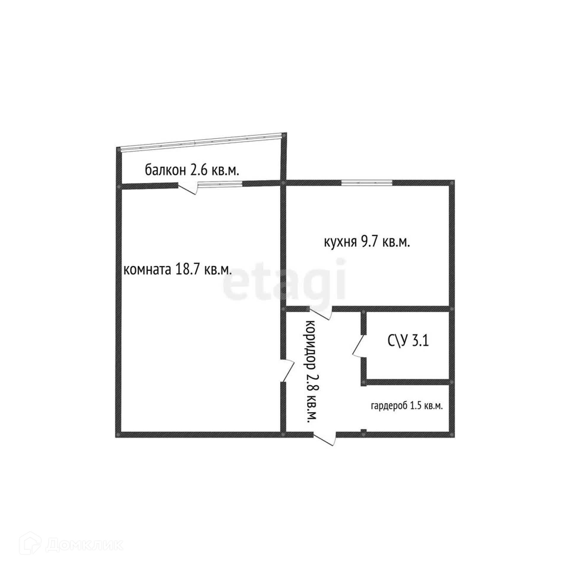 Жилая площадь 18.7 м2