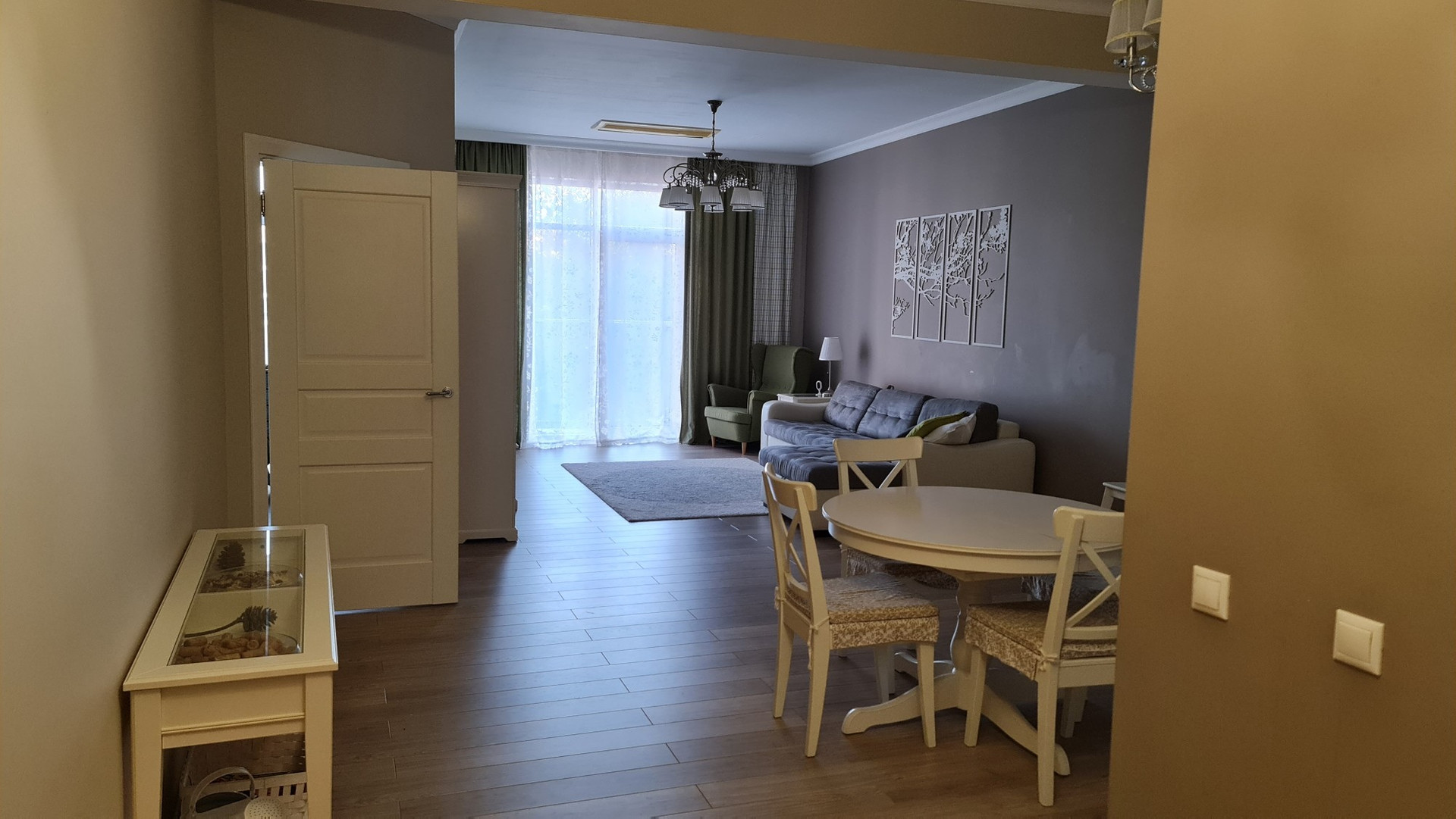 Квартира на 4м этаже, нет шума от улицы, ресторанов и городской жизни. Квартира с техникой и мебелью. Не сдавалаь, использовалась летом на пару месяцев. Просторная, светлая, с хорошим ремонтом. Два санузла, один с душевой кабиной, другой с ванной. Большая гардеробная. Площадь 73.4 и 10 лоджия. Потолки 3.0 метра.