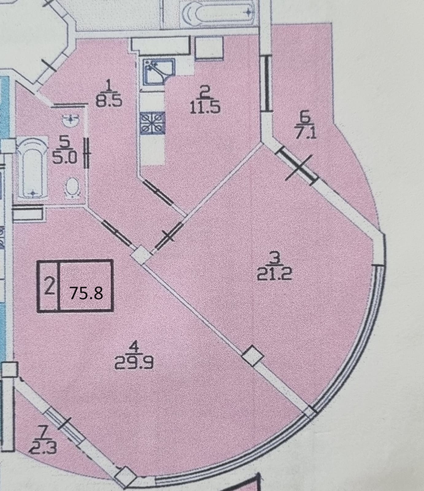 Общая площадь 75.8 м2