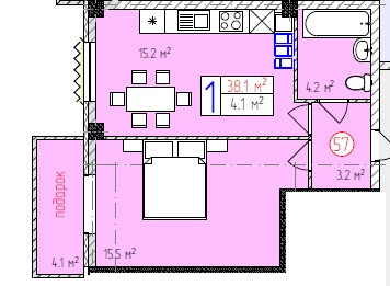 Общая площадь 43 м2