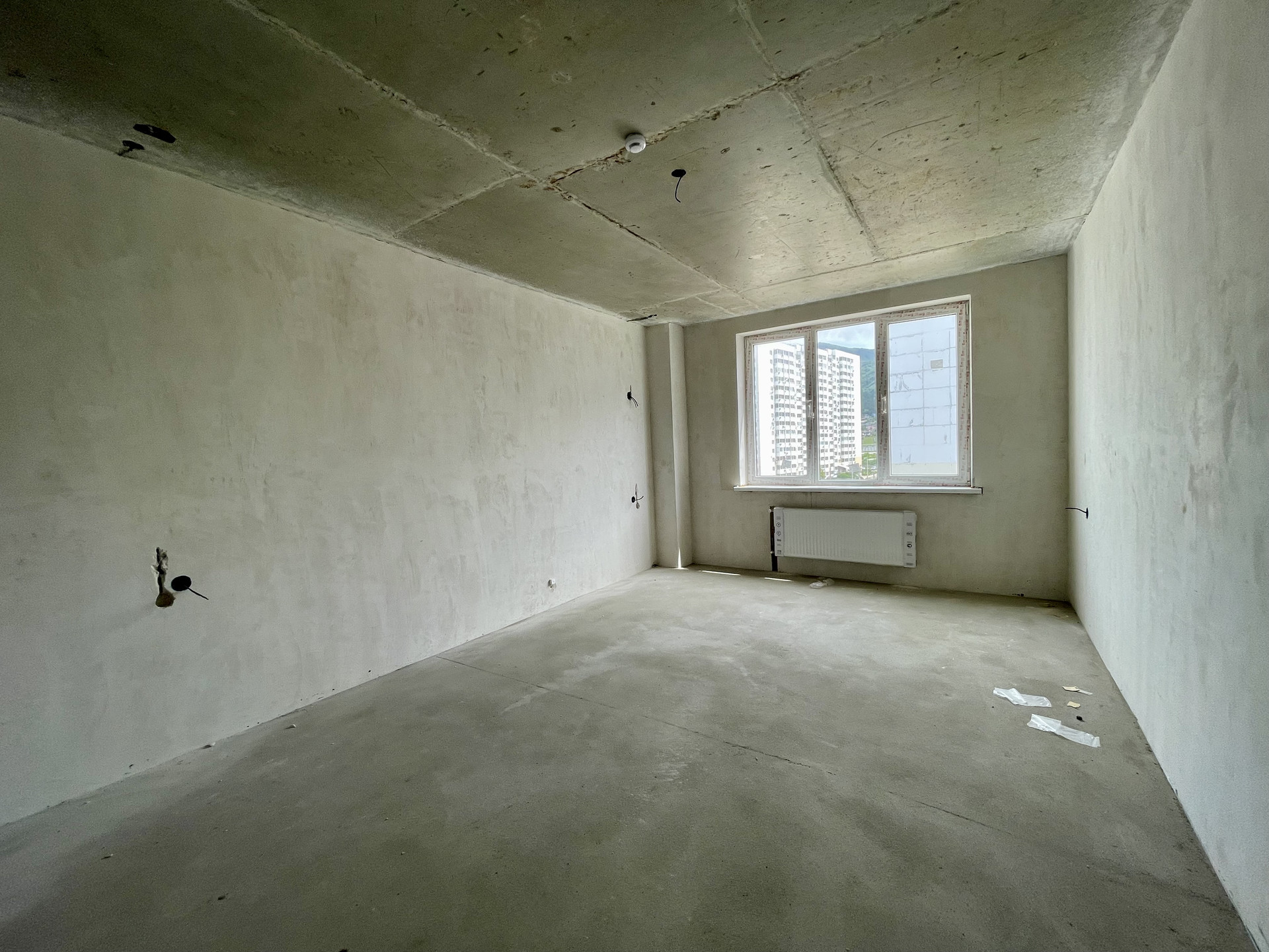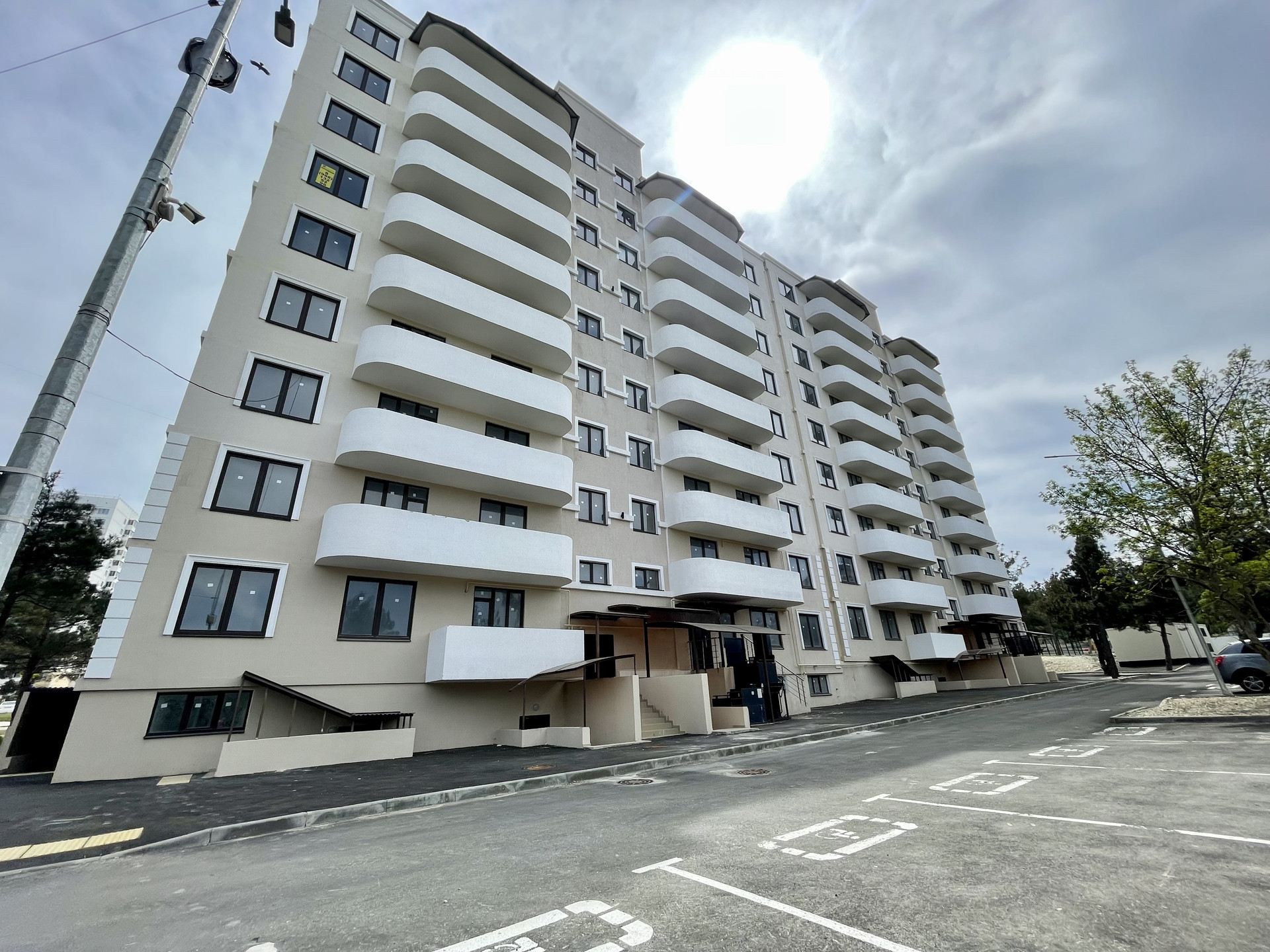 В квартире два санузла, просторная кухня и комната площадью 21 квадратный метр. Из кухни есть выход на балкон, открывающий великолепный вид на горы и внутренний двор. Район обеспечен развитой инфраструктурой: множество магазинов, школа, детский сад, большая парковка. До моря всего 10 минут на автомобиле, а также легкий доступ до центра города за тем же временем.
