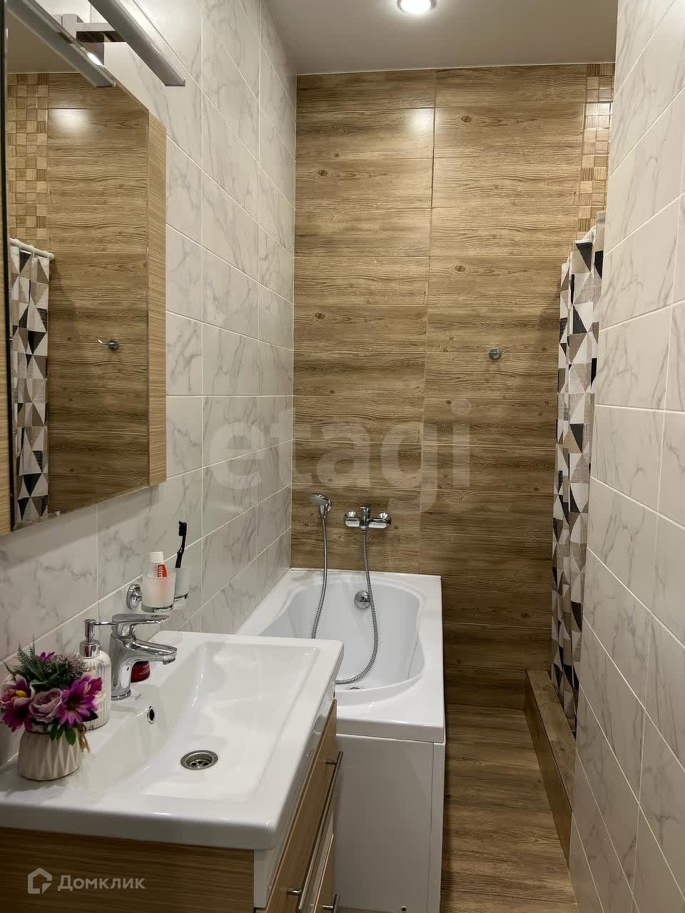 Санузел раздельный, в ванной комнате есть и душ, и ванна.
