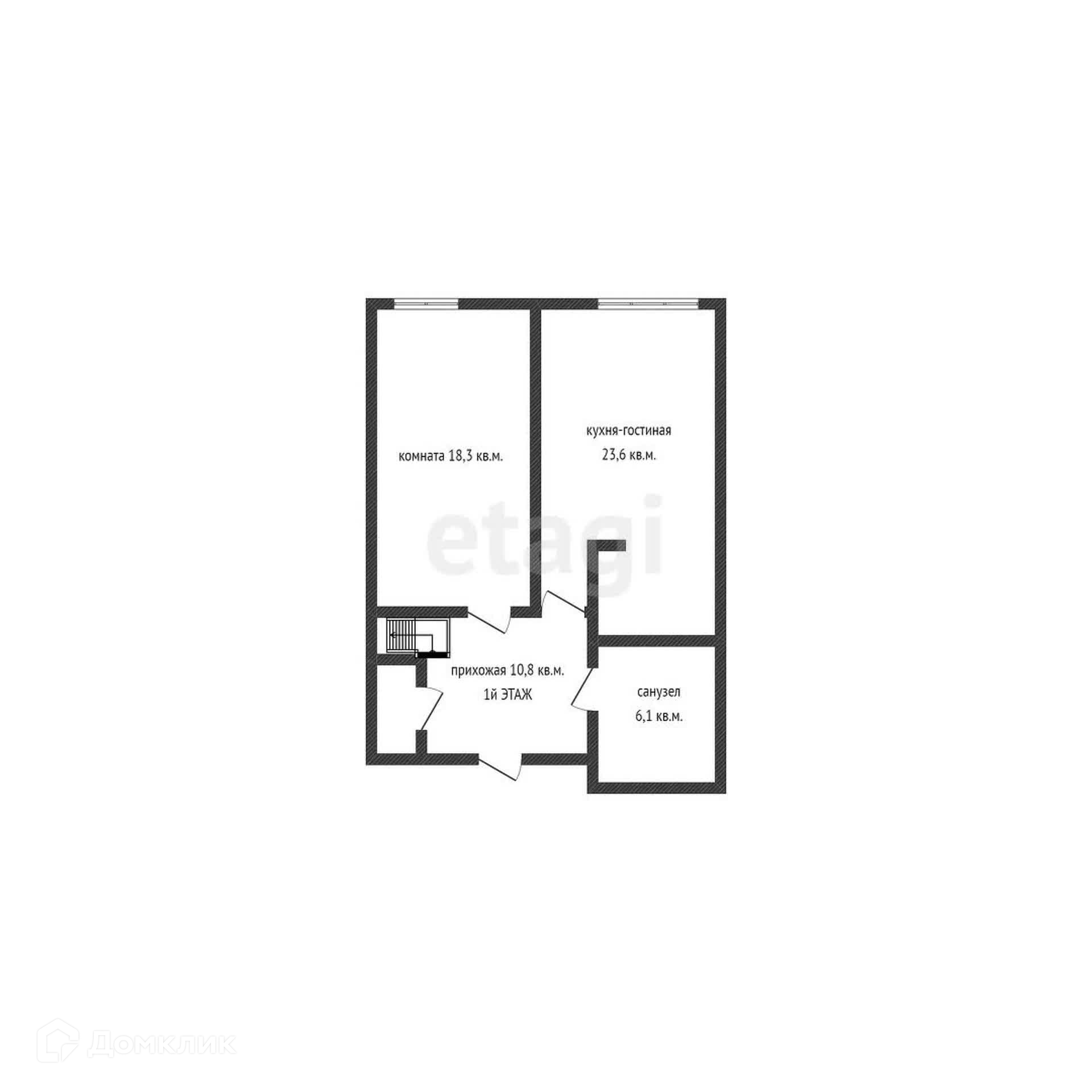 Площадь 1го этажа 60,5 кв.м.