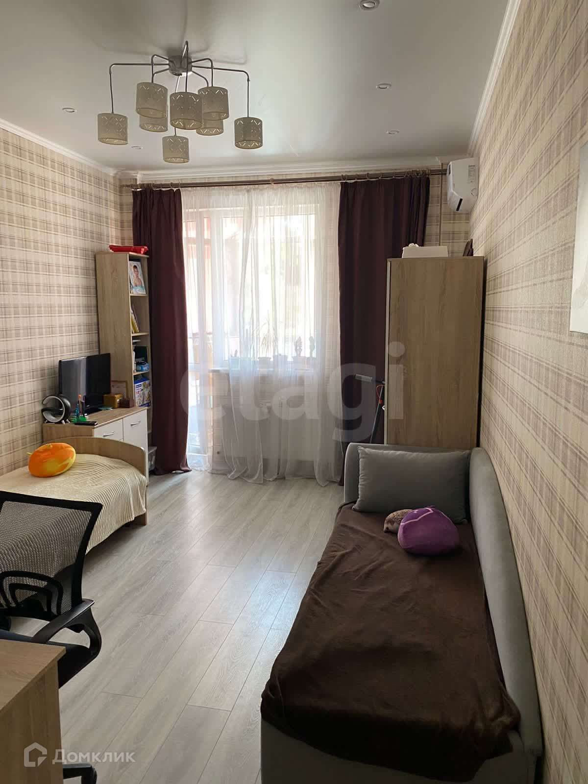 Площадь квартиры составляет 65,8 квадратных метров, включая просторную кухню площадью 20,8 квадратных метров, изолированные комнаты: родительская спальня 17,57 кв.м. и детская 16,28 кв.м. из комнат выход на застекленные лоджии.