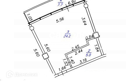 Жилая площадь 24.2 м2
