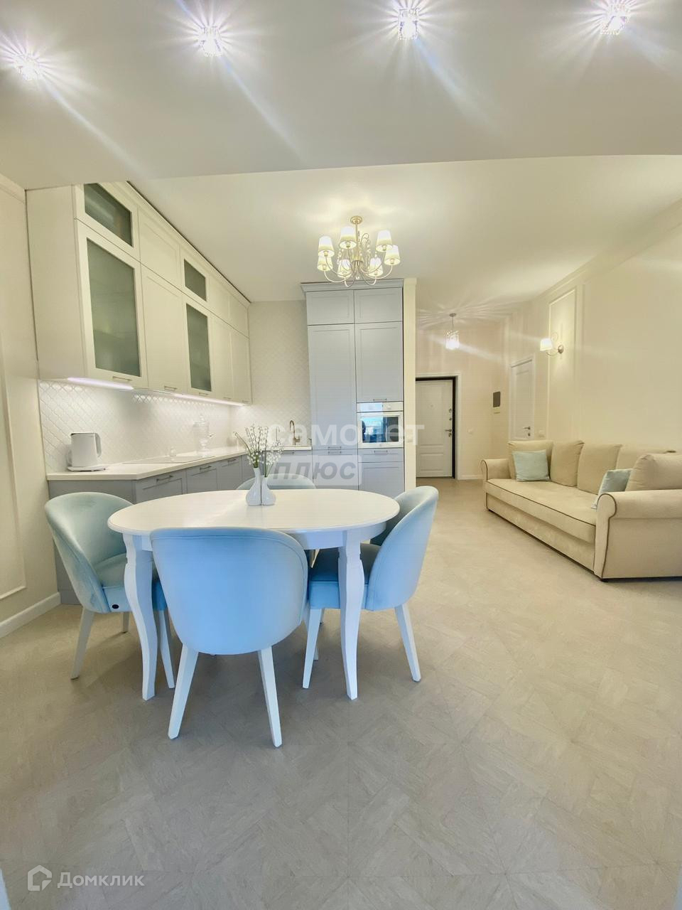 В квартире выполнен дизайнерский современный ремонт, встроенная кухня с прекрасной бытовой техникой ( посудомоечная машина, индукционная плита, встроенный духовой шкаф, все светлое в идеальном состоянии.