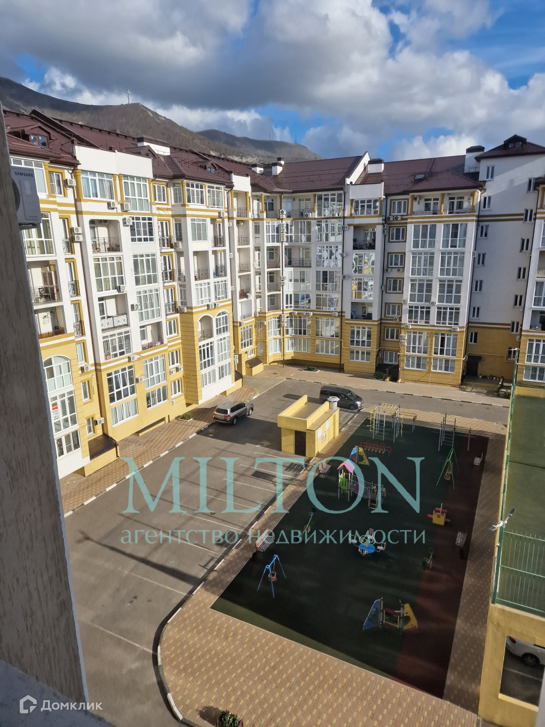 Придомовая территория комплекса представляет собой отдельное внутреннее закрытое пространство между жилыми домами. Здесь расположена двухуровневая зона отдыха с просторными детские площадки и места для отдыха взрослых, спортивная площадка с силовыми тренажерами, а также баскетбольная площадка.