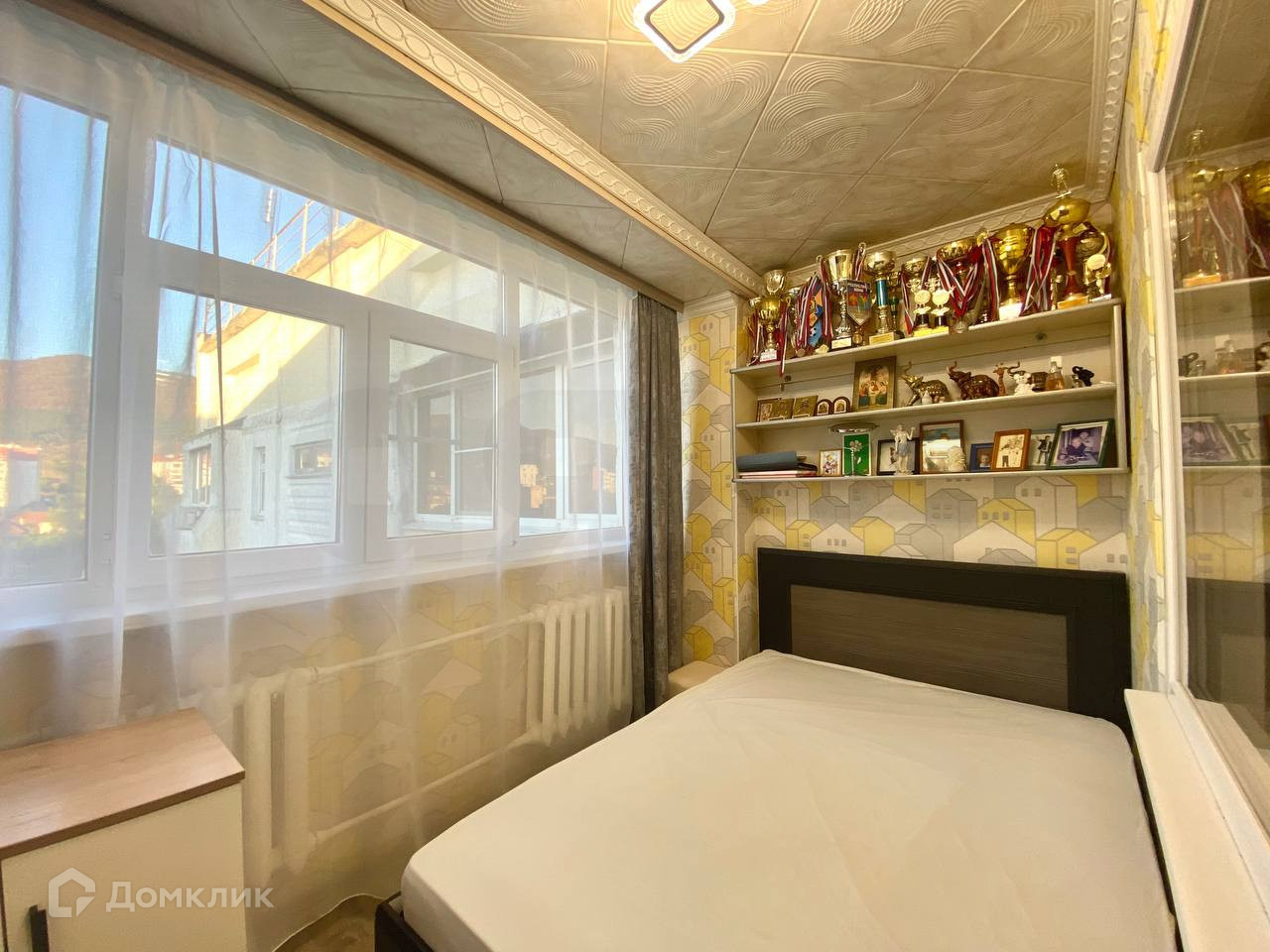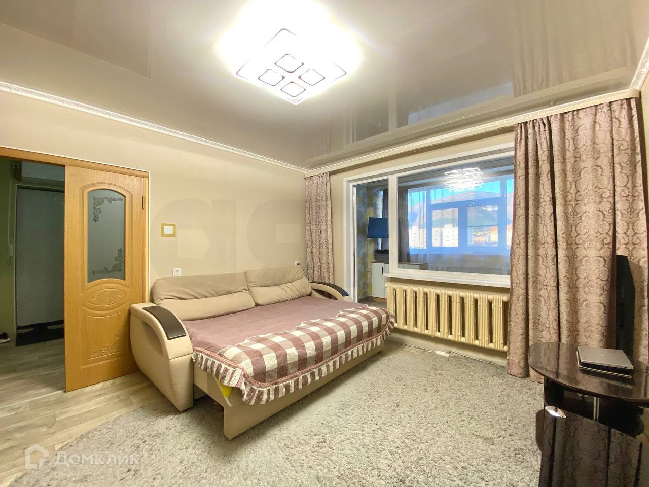 Благодаря просторной застекленной лоджии есть возможность разместить дополнительное спальное место и организовать уютное пространство с безупречным видом на город и горы.