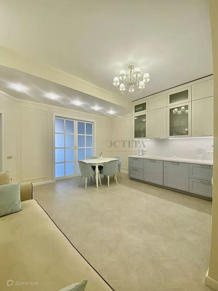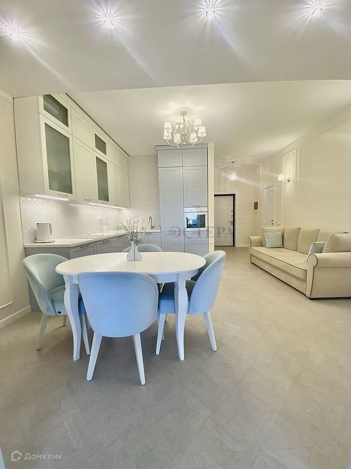 Квартира выполнена с дизайнерским современным ремонтом, оборудована встроенной кухней с прекрасной бытовой техникой: посудомоечной машиной, индукционной плитой, встроенным духовым шкафом. Все в идеальном состоянии и светлом исполнении.