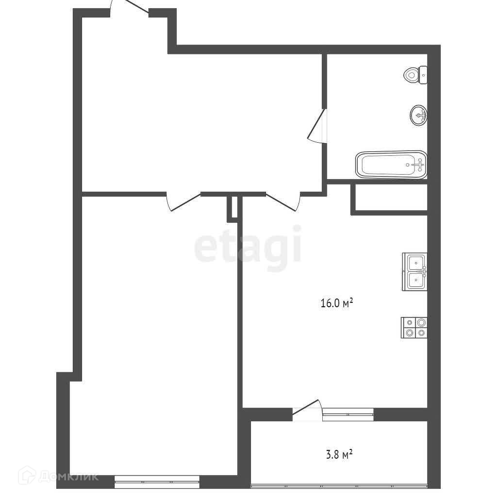 Общая площадь 54.3 м2