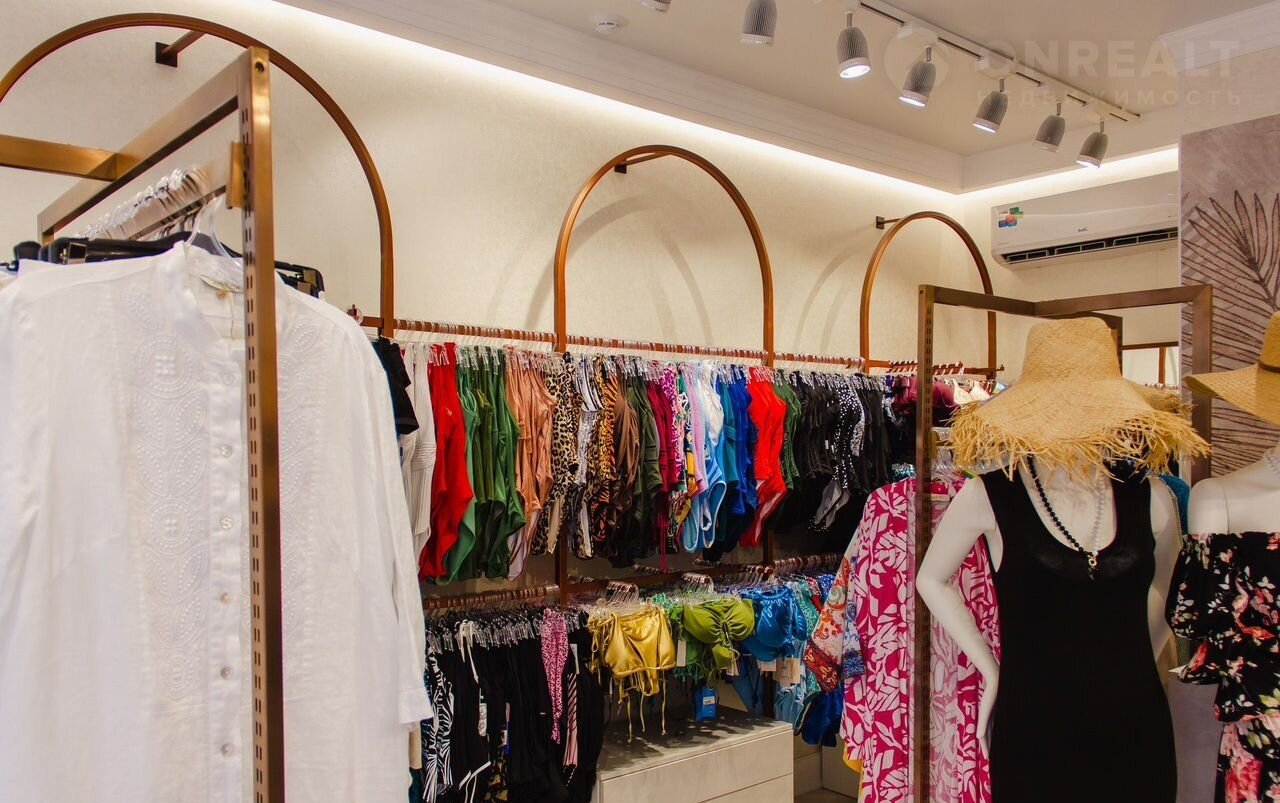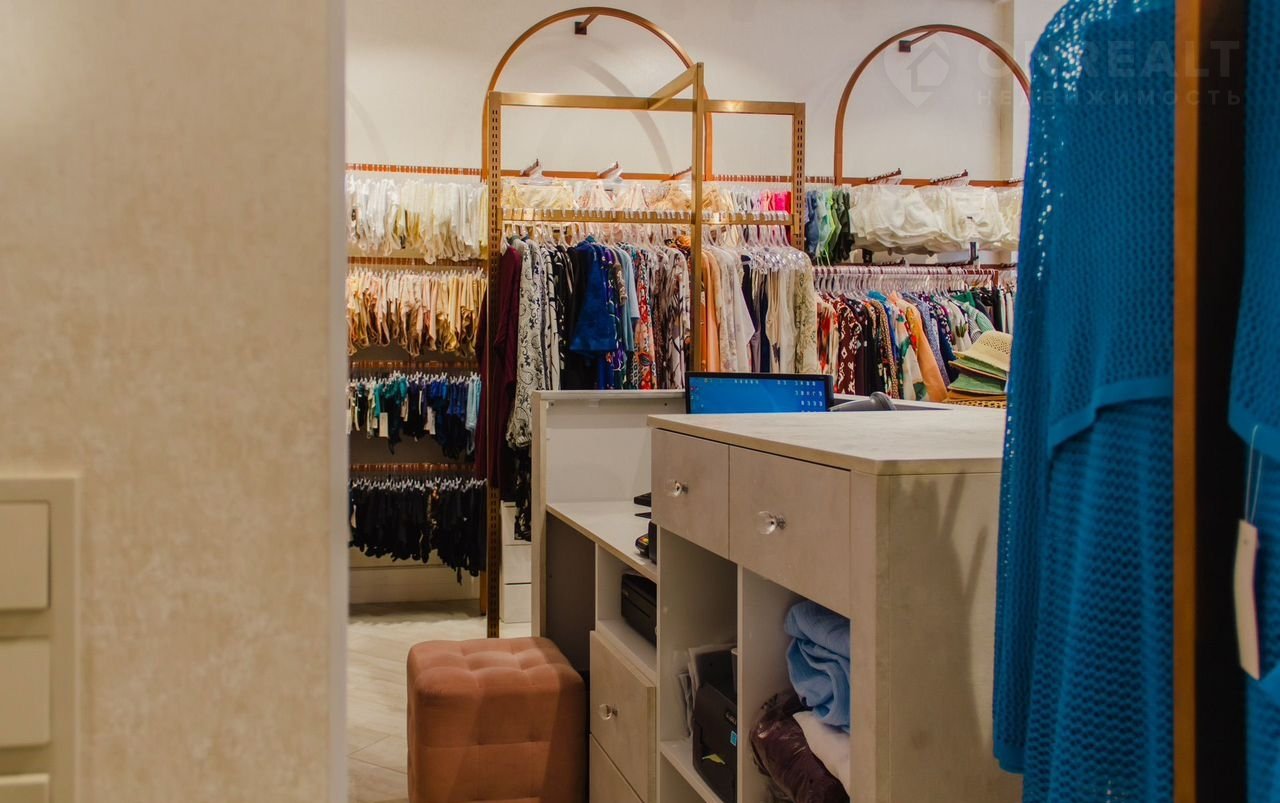 - Планировка: одно единое пространство торгового зала с уже обустроенными зонами под две примерочные, подсобное помещение и санузел.
