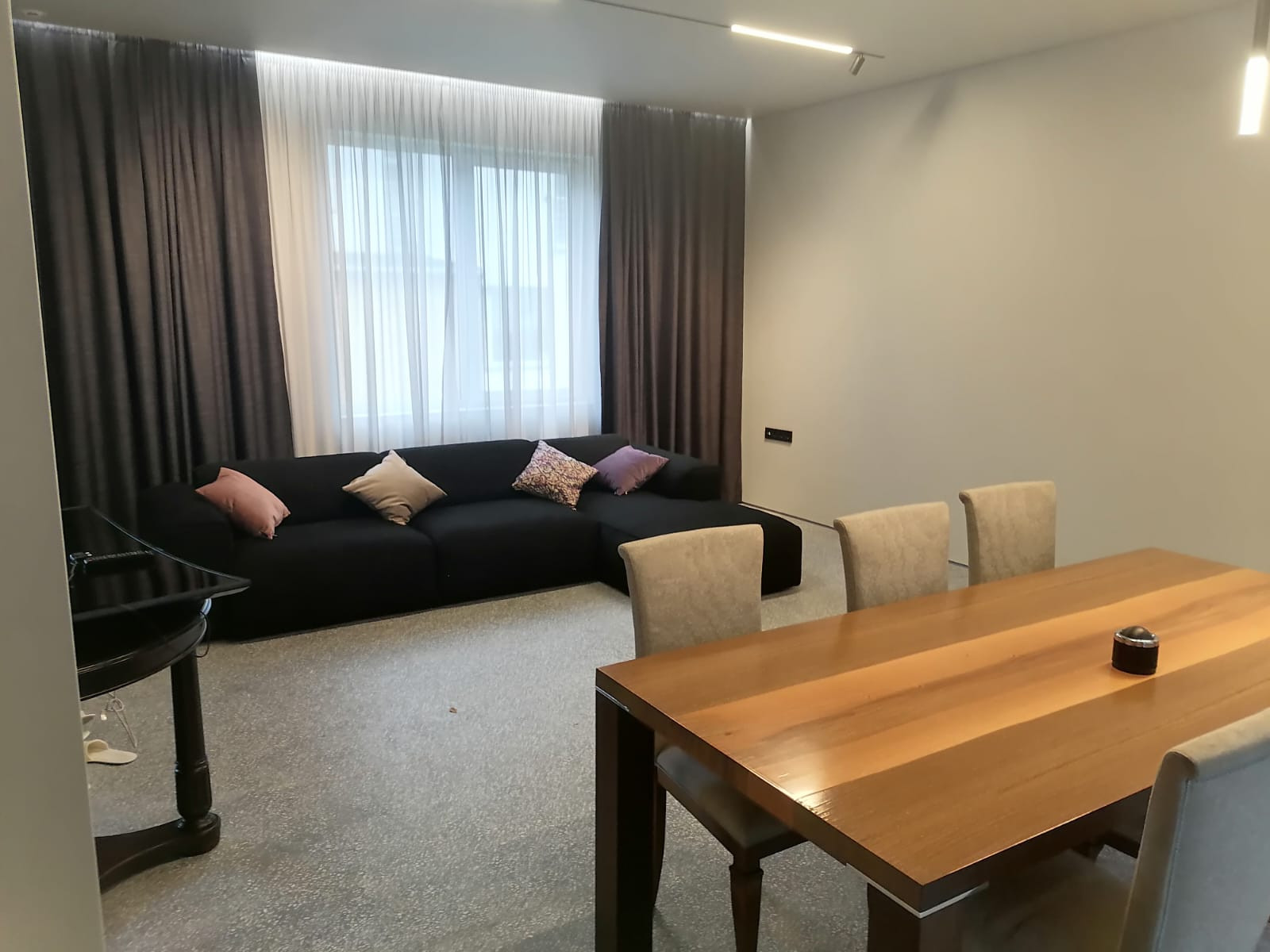 Предлагается к продаже шикарный трехэтажный таунхаус (апартаменты) общей площадью 265 м2 в ЖК Феллини. Таунхаус представляет собой: 1-й этаж - гостиная – 33 м2 с выходом на открытую террасу, кухня – 19м2, прихожая - 12,5 м2, с/у – 3 м2, котельная – 5 м2. 2-й этаж – 3 спальни – 13,4м2, 14,8 м2, 14,2м2 (мастер-спальня с выходом на балкон), 2с/у – 2,9 м2, 5 м2. 3-й этаж – открытая терраса - 75м2. В апартаментах выполнен эксклюзивный дизайнерский ремонт (2022 год) с применением дорогостоящих материалов. 1-й этаж -теплый пол терраццо, 2-й этаж- паркетная доска, во всех помещениях установлен теневой плинтус, что создает эффект парящих стен, на 1-м этаже канальное кондиционирование, на 2-м – сплит- системы. Апартаменты полностью мебелированы, кухня укомплектована всей необходимой техникой. Перед входом есть два парковочных места и газон, перед открытой террасой участок 1 сотка. ЖК «Феллини» — это современный охраняемый жилой комплекс, на благоустроенной территории которого есть два бассейна, детская площадка, место для прогулок, не покидая закрытой территории, гостевая парковка. В 2-х минутах ходьбы от ЖК находится набережная с вековыми пицундскими соснами, рестораны. В шаговой доступности супермаркет Табрис со своим широчайшим выбором товаров, дельфинарий, спа-салоны. Для собственников предоставляются дополнительные скидки на услуги в отеле «Приморье» и возможность посещения спортивного комплекса и закрытого пляжа. Объект выставлен на продажу в единственном числе в данном ЖК.