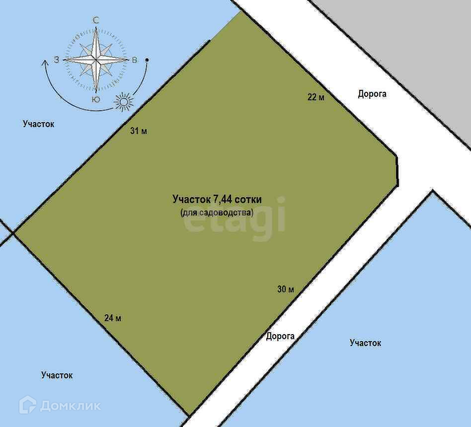 Площадь участка 7.44 сот.