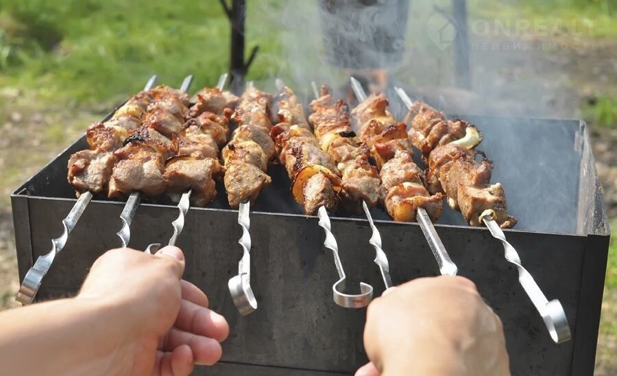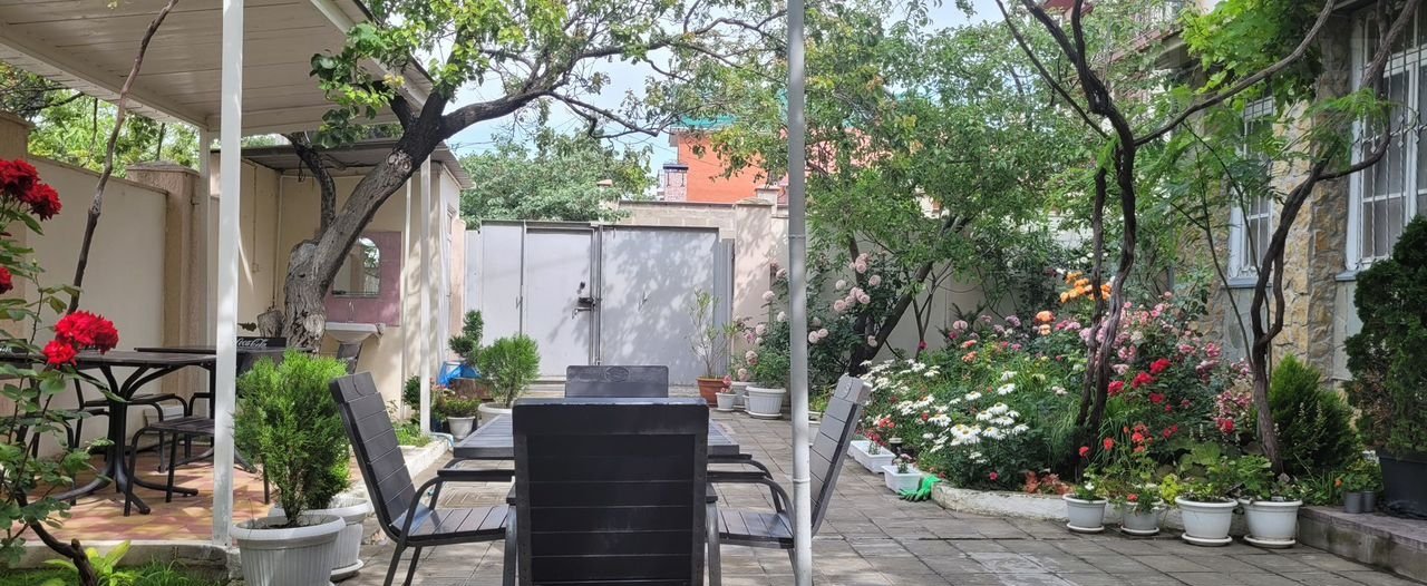 На территории двора: зеленый сад с местами для отдыха, беседка ,столики и стулья для питания, мангальная зона, качели.