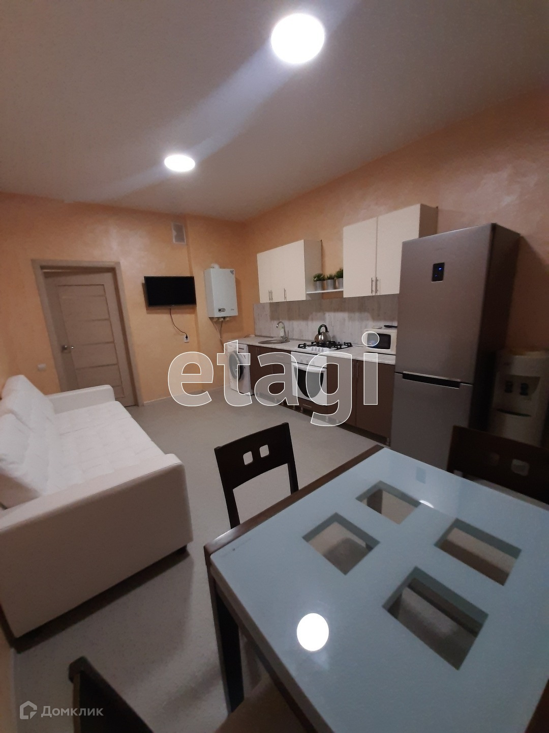 Квартира укомплектована всем необходимым для проживания. Имеется 4 спальных места. На кухне: кондиционер, плазма TV, кухонный гарнитур, холодильник, электрическая плита, микроволновка, стиральная машина. В спальне: кондиционер, плазма TV, двуспальная кровать, стол для работы, удобное кресло. В санузле полноценная ванна. Коммунальные платежи в цене не указаны.