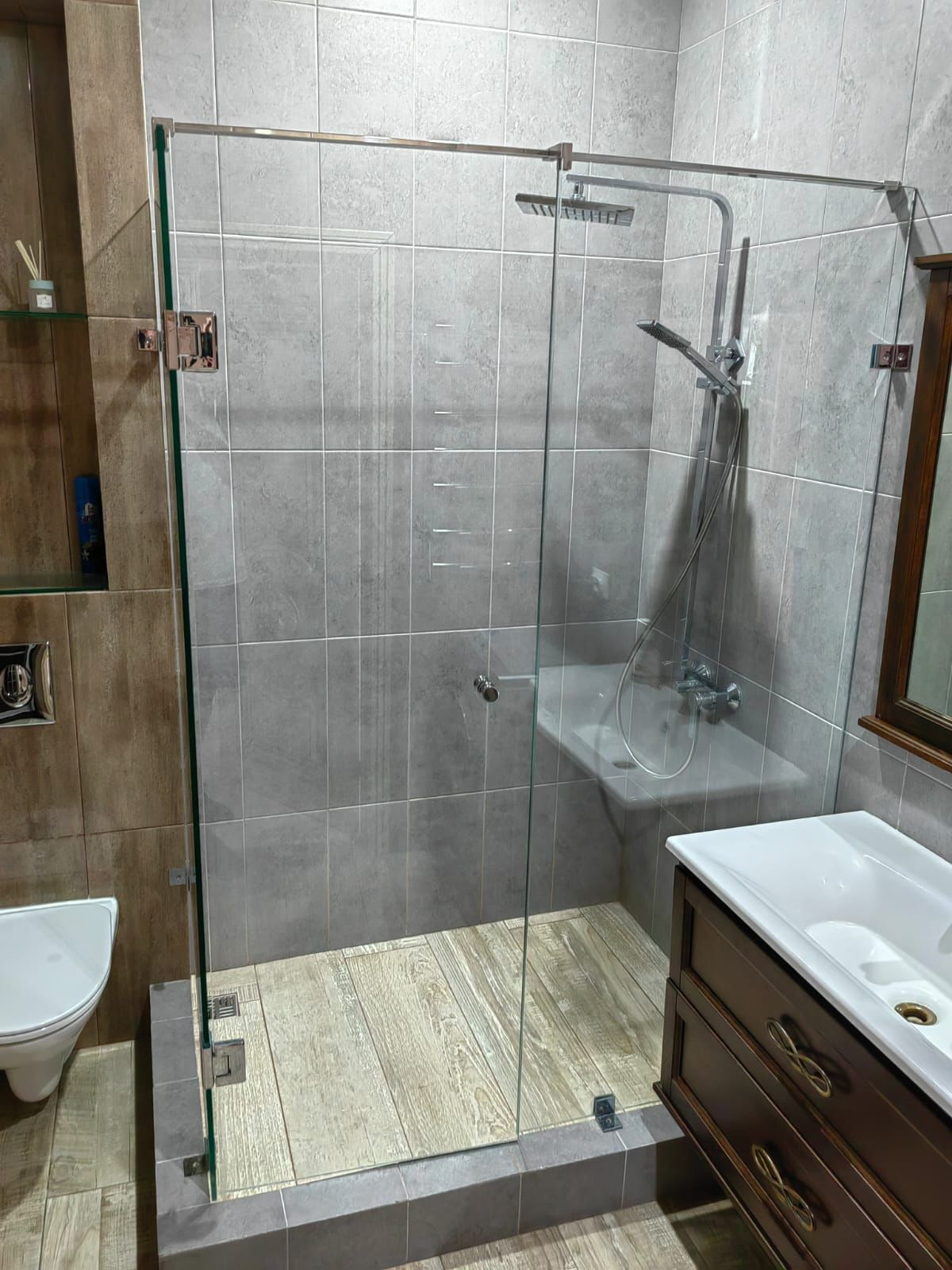 Большая душевая кабина с тропическим душем.