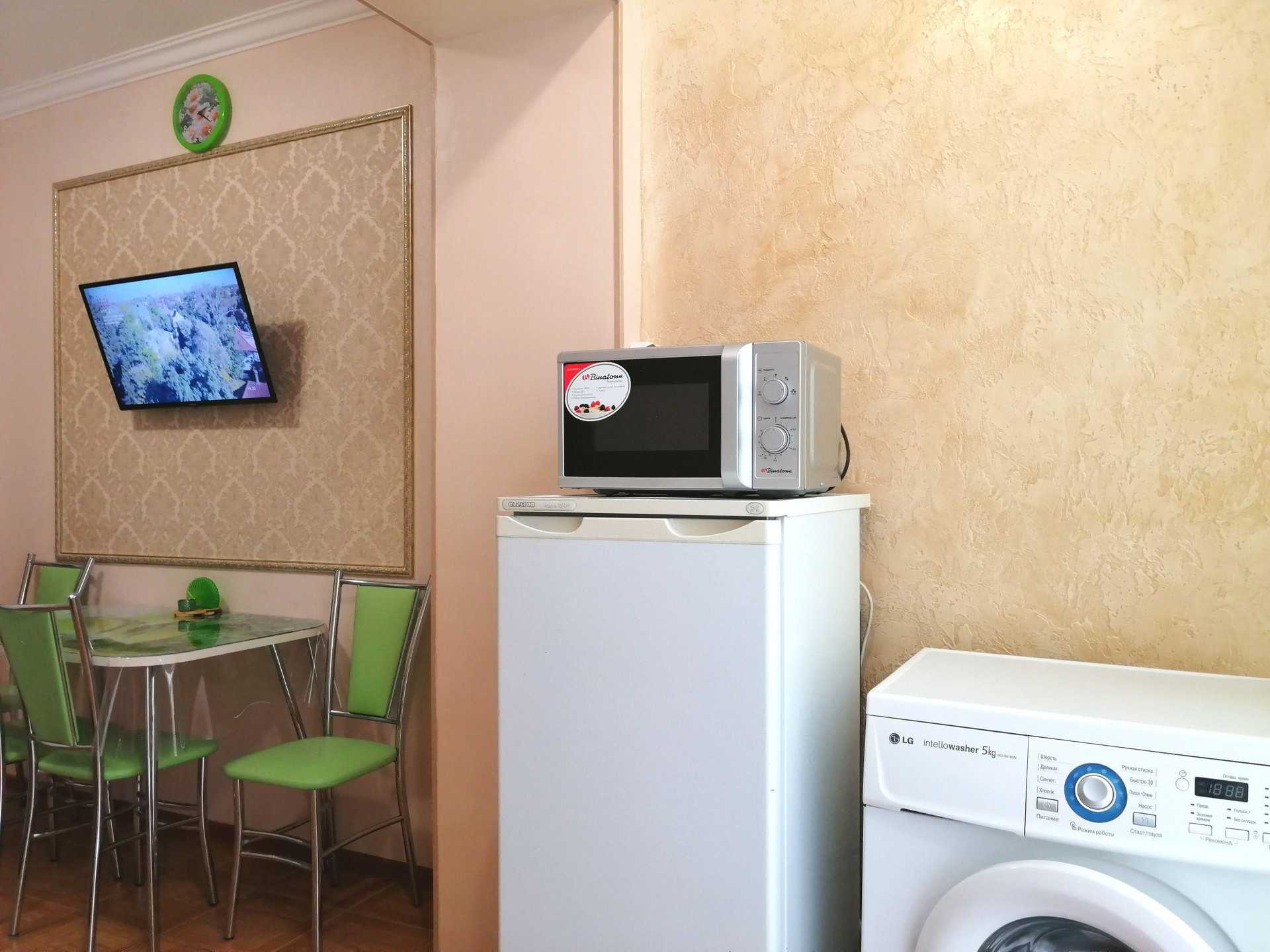 холодильник, стиральная машина, эл.сенсорная варочная панель, микроволновка, сплит-система, tv интерактивное 130 каналов, WI-FI, два телевизора. ⠀