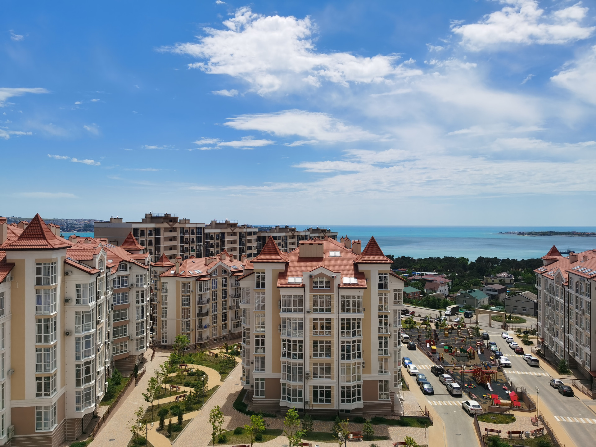 В комплексе детская и спорт площадки, магазины, салон красоты, кафе, частные школа, садик, языковой центр. Вода круглогодично, индивидуальное отопление. До моря 15 минут пешком. Рядом с домом лес. Вид на горы.