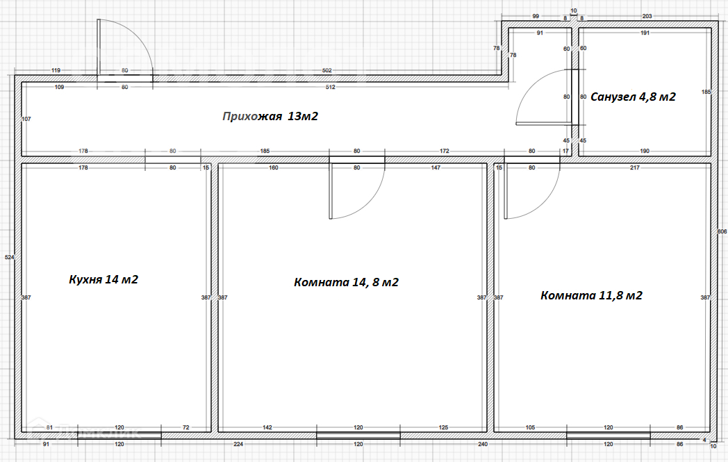 Общая площадь 58.4 м2