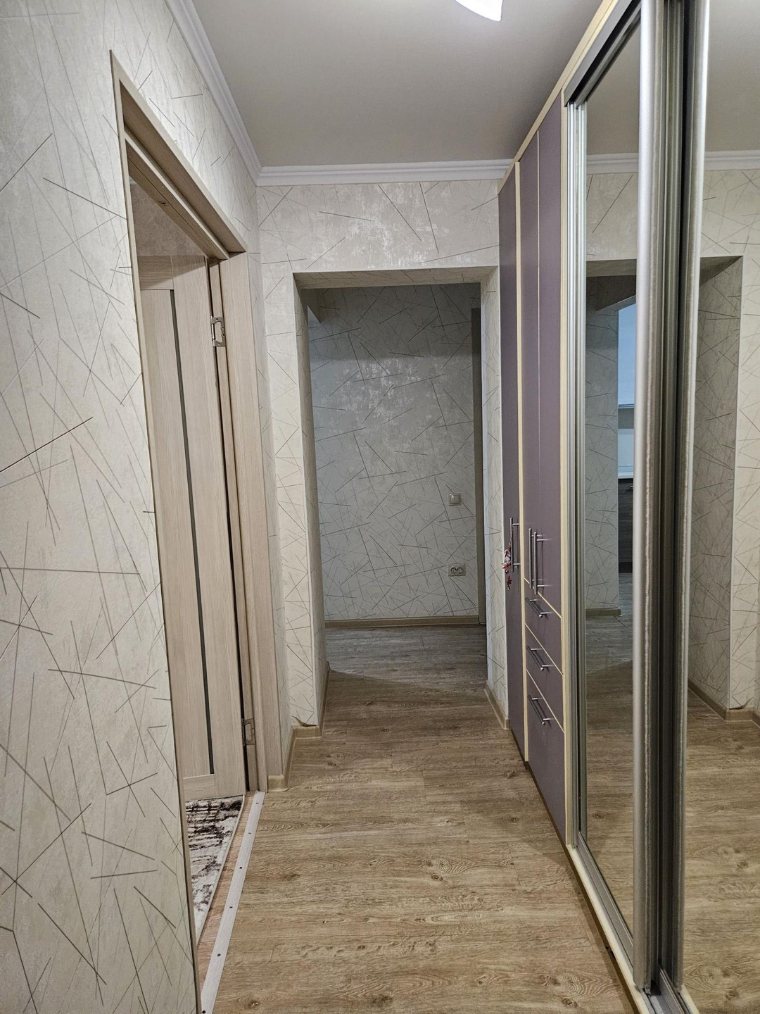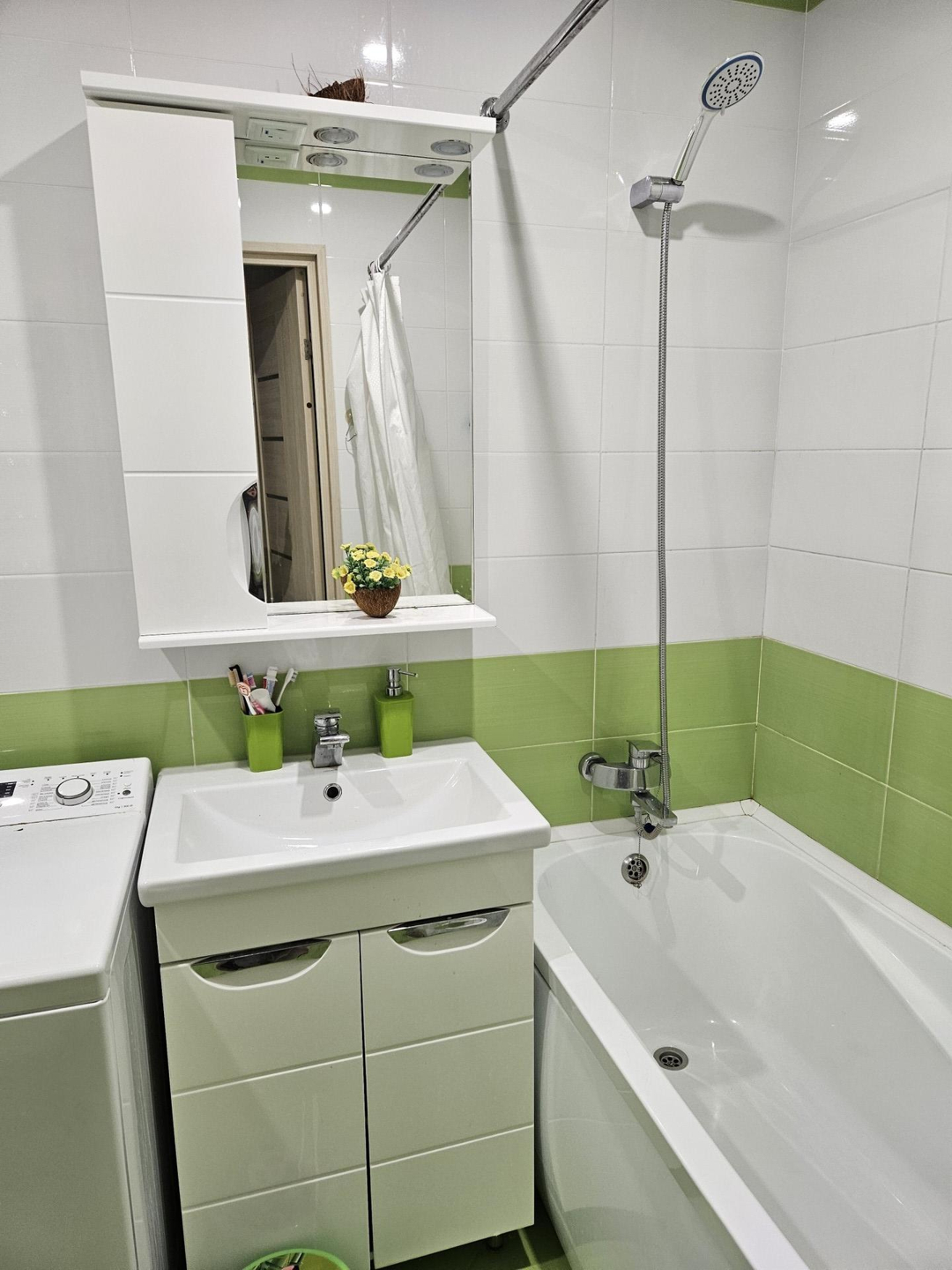 В квартире сделан свежий ремонт.  Продаётся с мебелью и техникой ( кухонный гарнитур со встроенной техникой, спальня, диван, шкафы, встроенный шкаф с большим зеркалом).                                                           Санузел совмещённый, плитка на полу и стенах, установлена качественная сантехника, заменены трубы водопровода и канализации на пластиковые, имеется стиральная машина.                                                     Кухня 9 м2, на лоджии  электрический духовой шкаф ( удобно). Светлый кухонный гарнитур придаёт уют, установлен раздвижной стол для больших компаний, мягкие стулья, рабочая вытжка.                                        В зале большой и удобный диван, пуфик, кондиционер. В спальне- шкаф для одежды, кровать, комод.                  В коридоре вместительный шкаф.          В комнатах всегда солнечно в любое время года.  Проблему ярких лучей по утрам решают жалюзи.