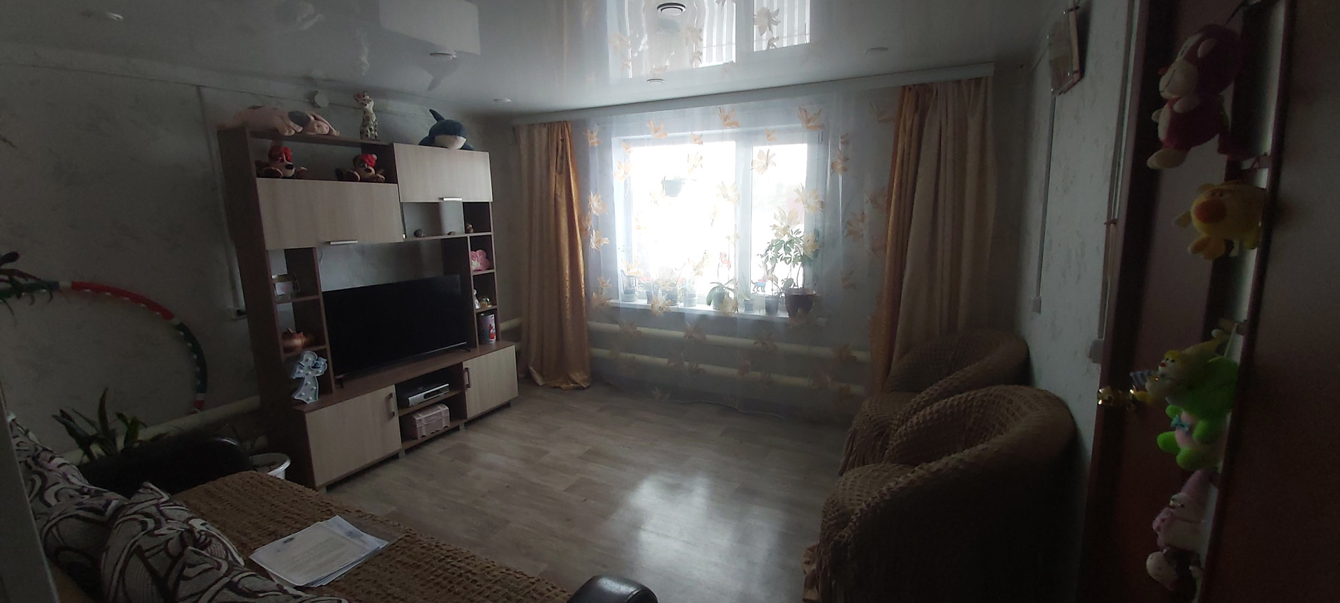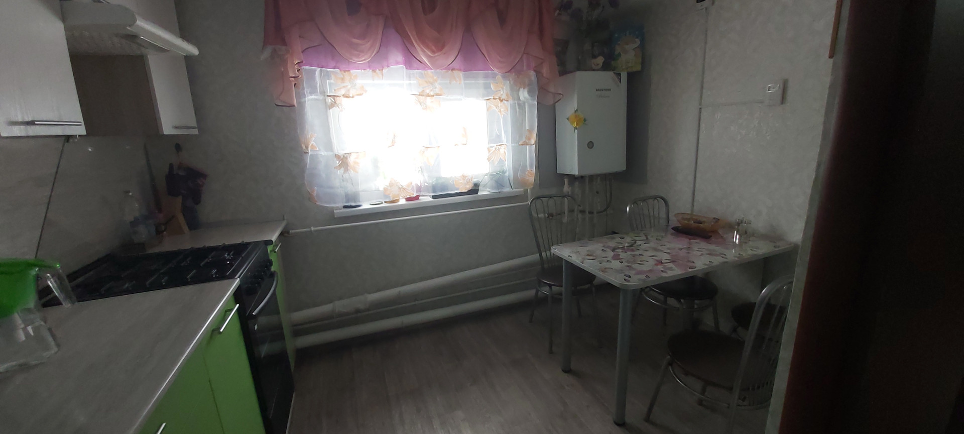Продается просторная квартира в 2-квартирном 1-этажном доме. Дом бревенчатый, обшит сайдингом, пристрой из арболитовых блоков, центральное водоснабжение, газ (горячая вода и отопление - закрытый контур), система канализации, электричество. Три жилых комнаты, просторная кухня, большая гардеробная. Окна стеклопакеты, натяжные потолки, металлическая входная дверь. Участок 6 соток, имеется баня.