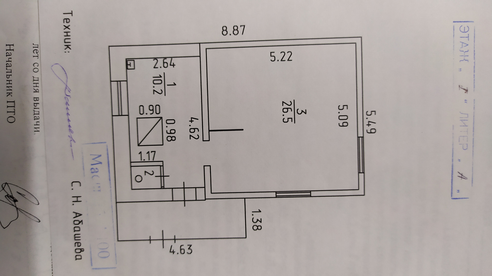 Общая площадь 37.6 м2
