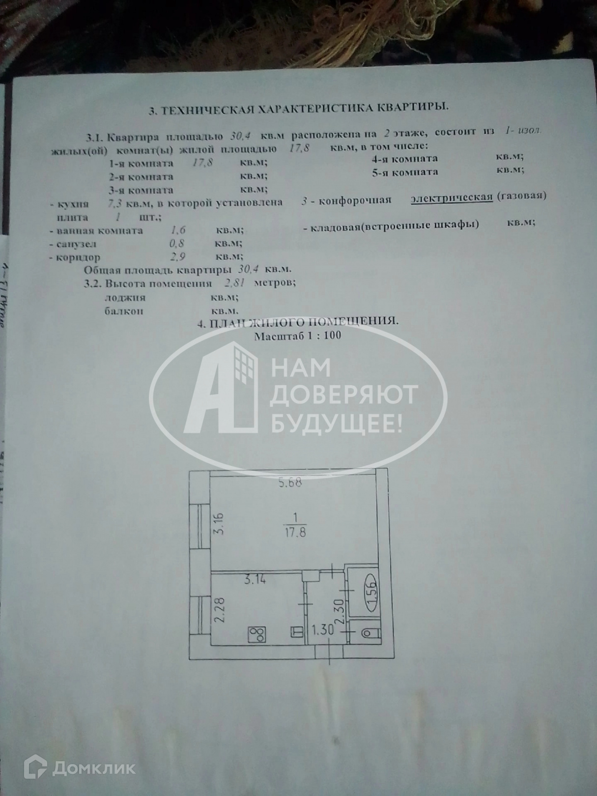 Общая площадь 30.6 м2