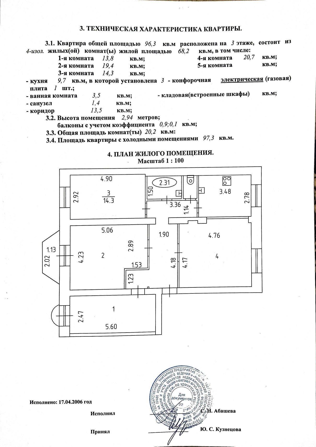Общая площадь 96.3 м2