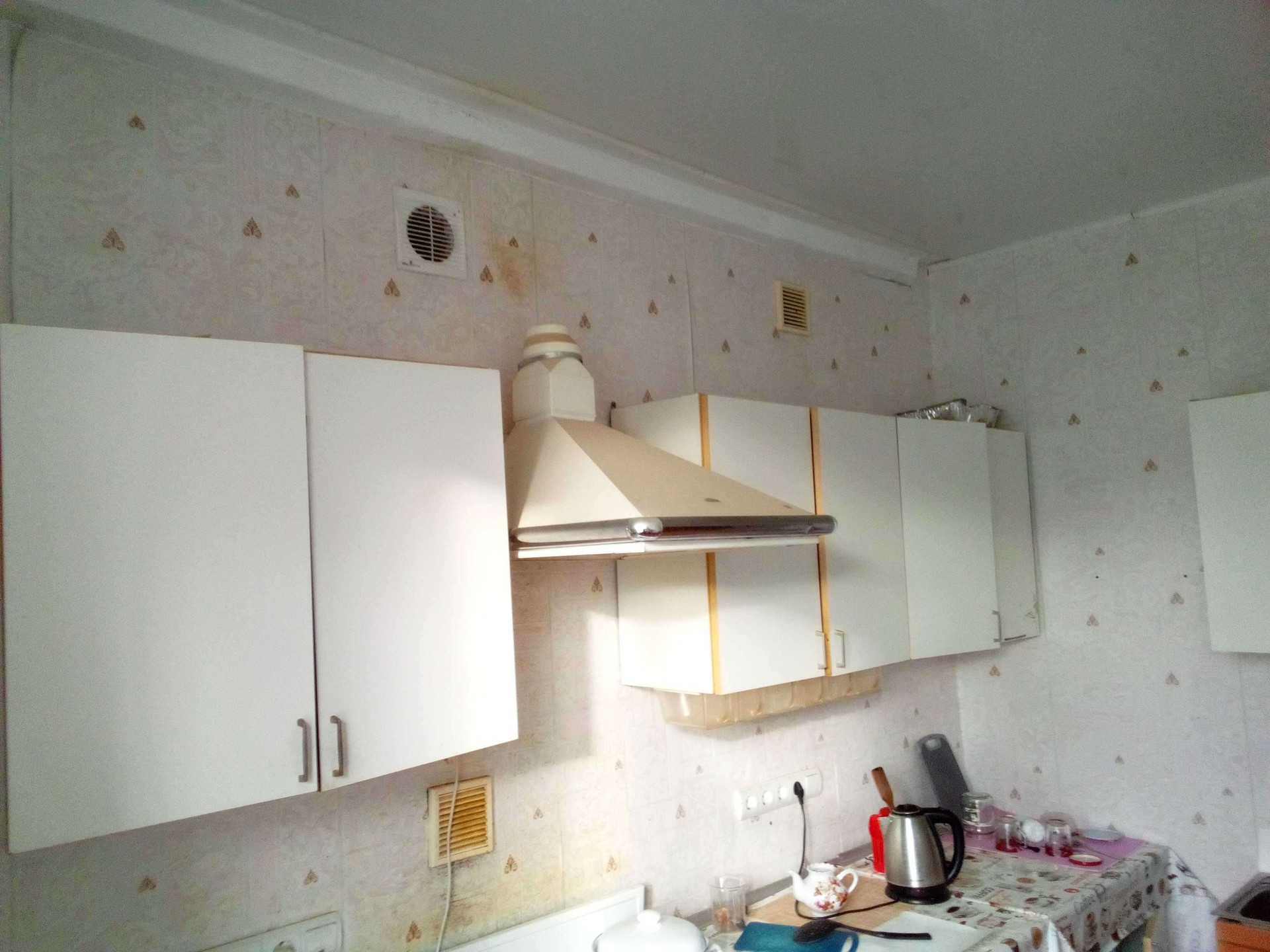 Вентиляция: каналы, ведущие на крышу - очищены и обеспечивают хорошее движение воздуха. В кухне 3 вентиляционных отверстия (одно под вытяжку электроплиты, второе с вытяжным вентилятором, третье резервное). Одно в туалете (с вытяжным вентилятором), два в ванной комнате. 5 из 6 имеют провода, соединённые с выключателями (для возможности снабдить оставшиеся 3 вентиляторами).