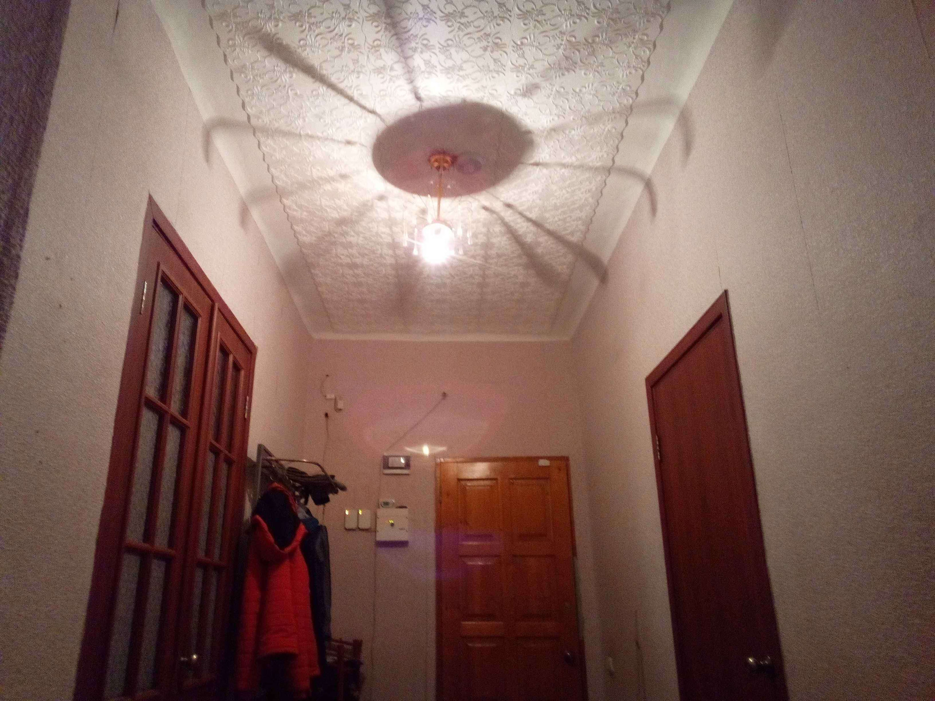 Потолки: в ванной комнате и кухне - натяжные, в туалете и малой прихожей - навесные. В комнатах номер 1, 2 и большой прихожей - пвх-плитки.