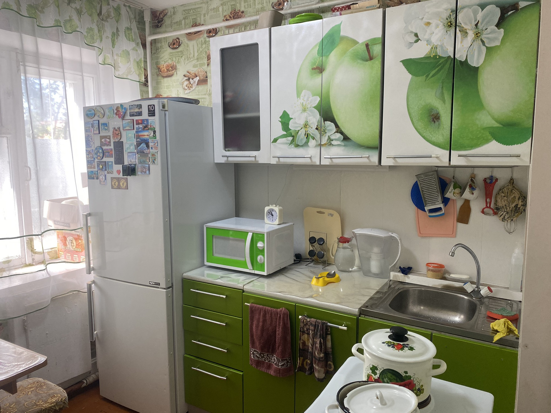 Квартира в хорошем состоянии, кухонный гарнитур, душевая кабинка, в комнатах установлены стеклопакеты, есть кладовка, окна на юг и восток.
