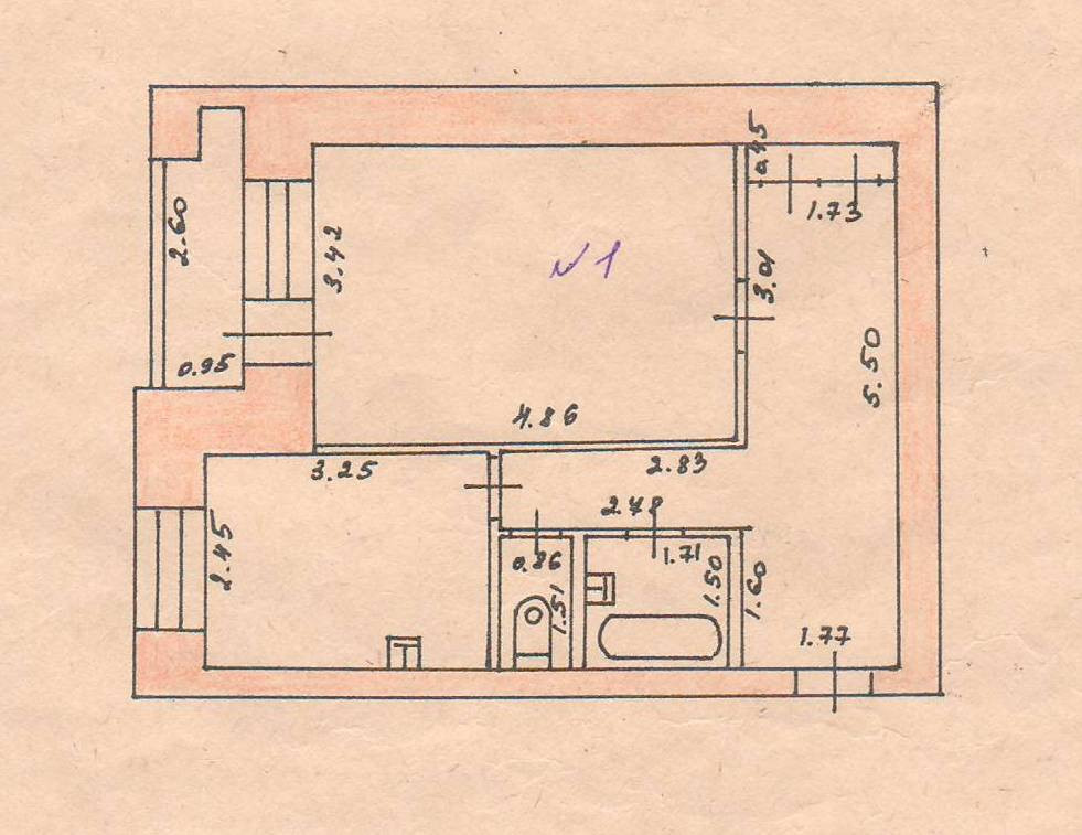 Балкон, лоджия 1 балкон