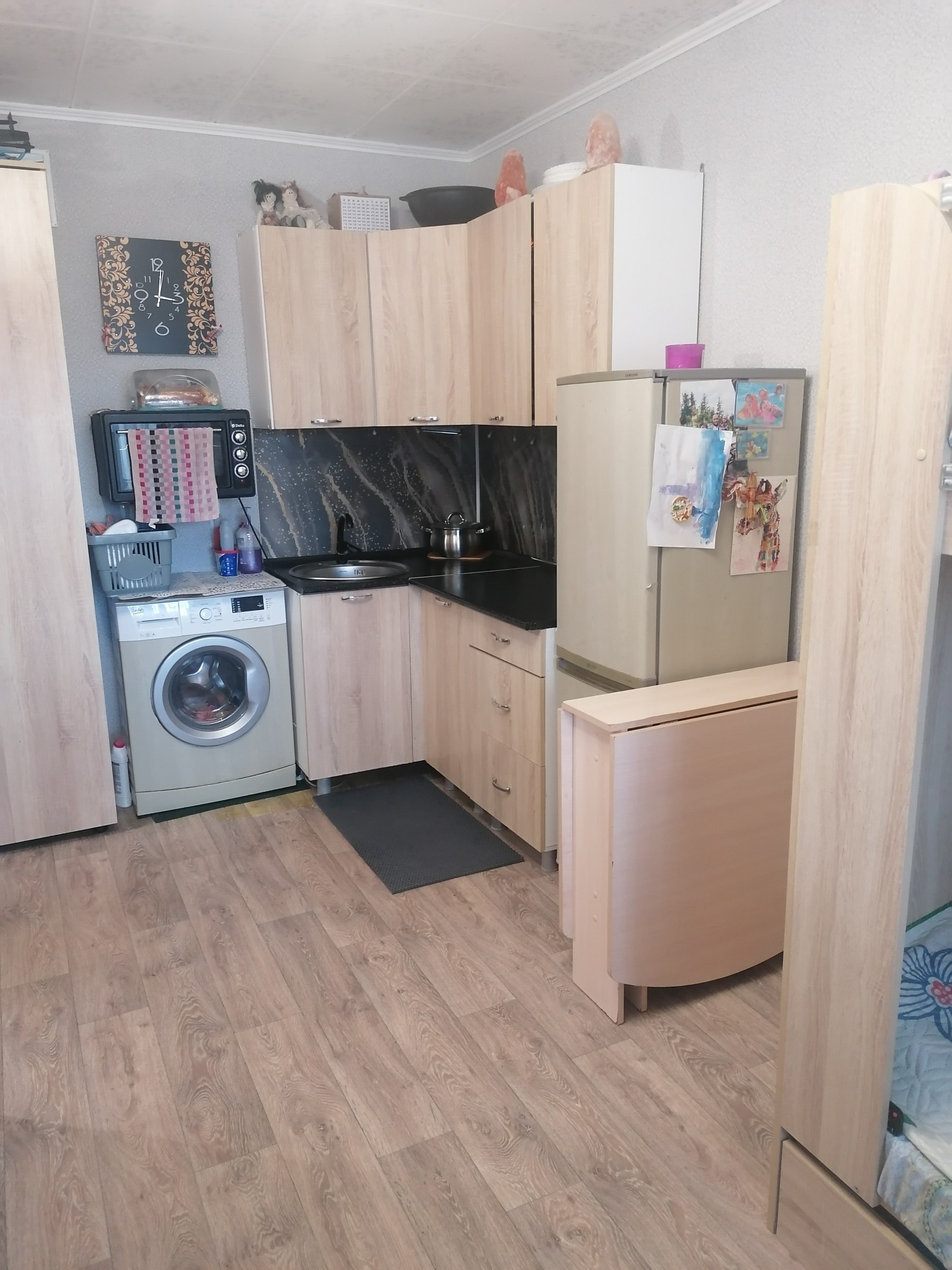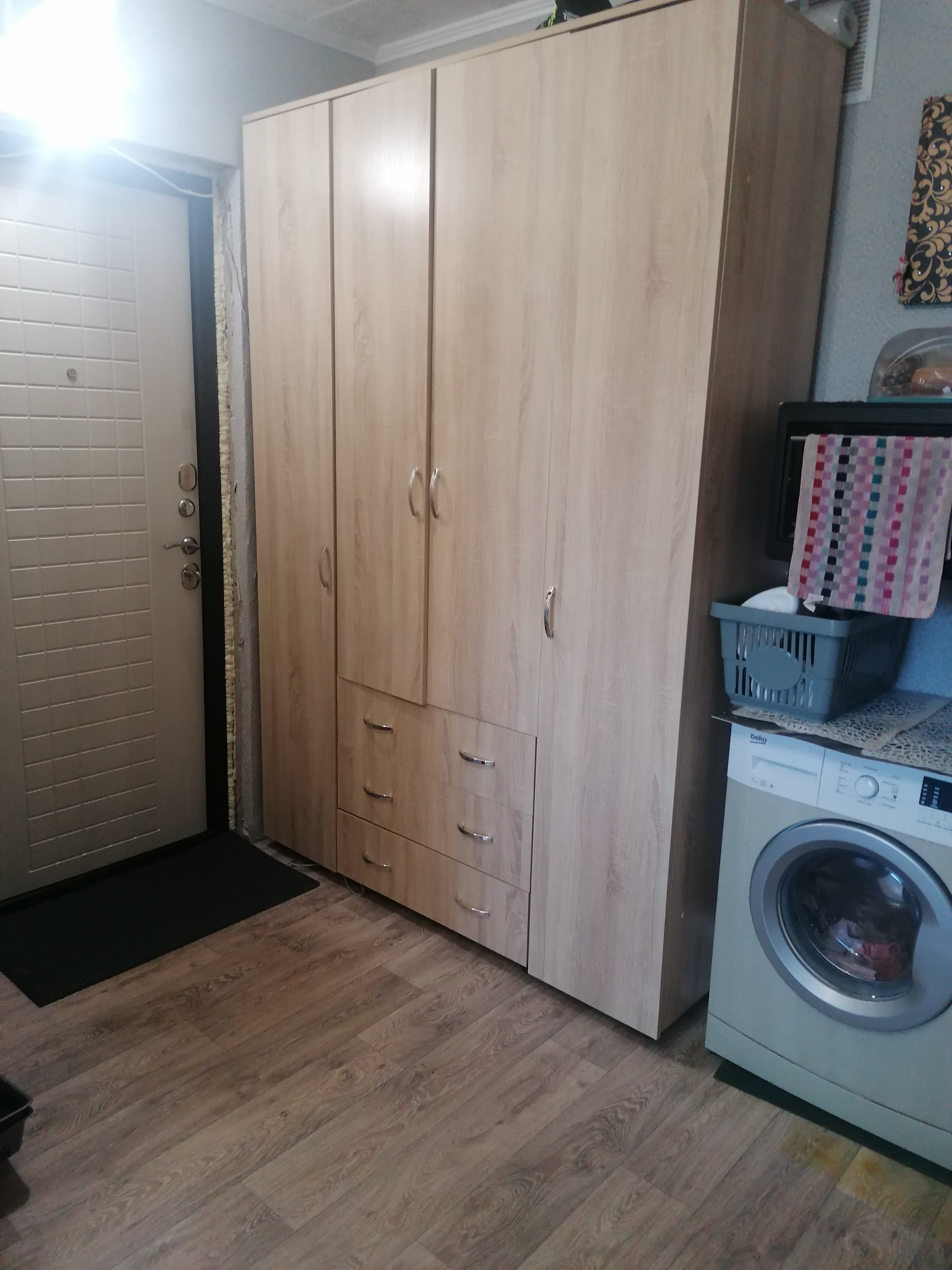 Остается: шкаф, кухня, диван, прихожая