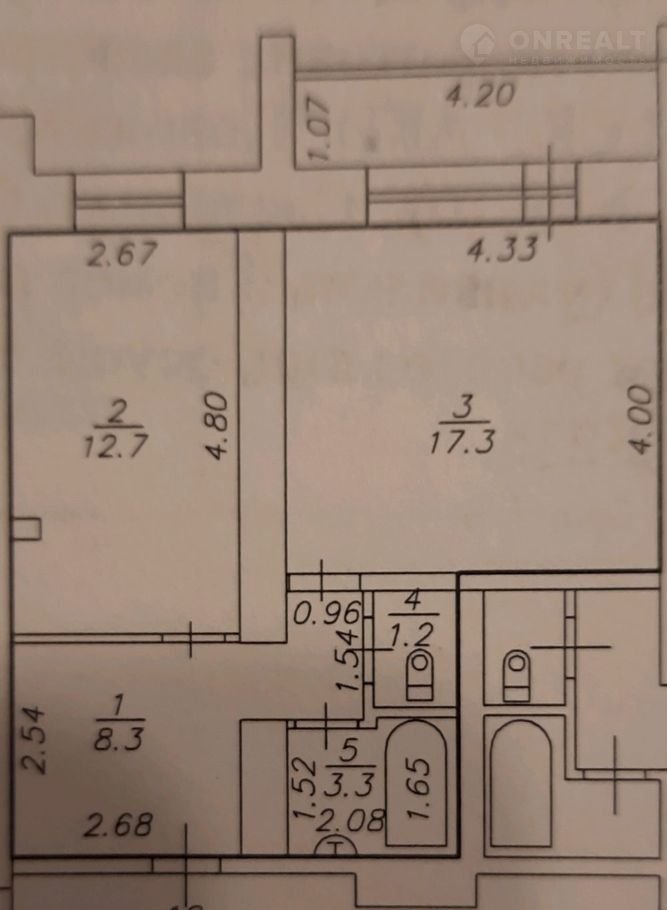 Общая площадь 42.8 м2