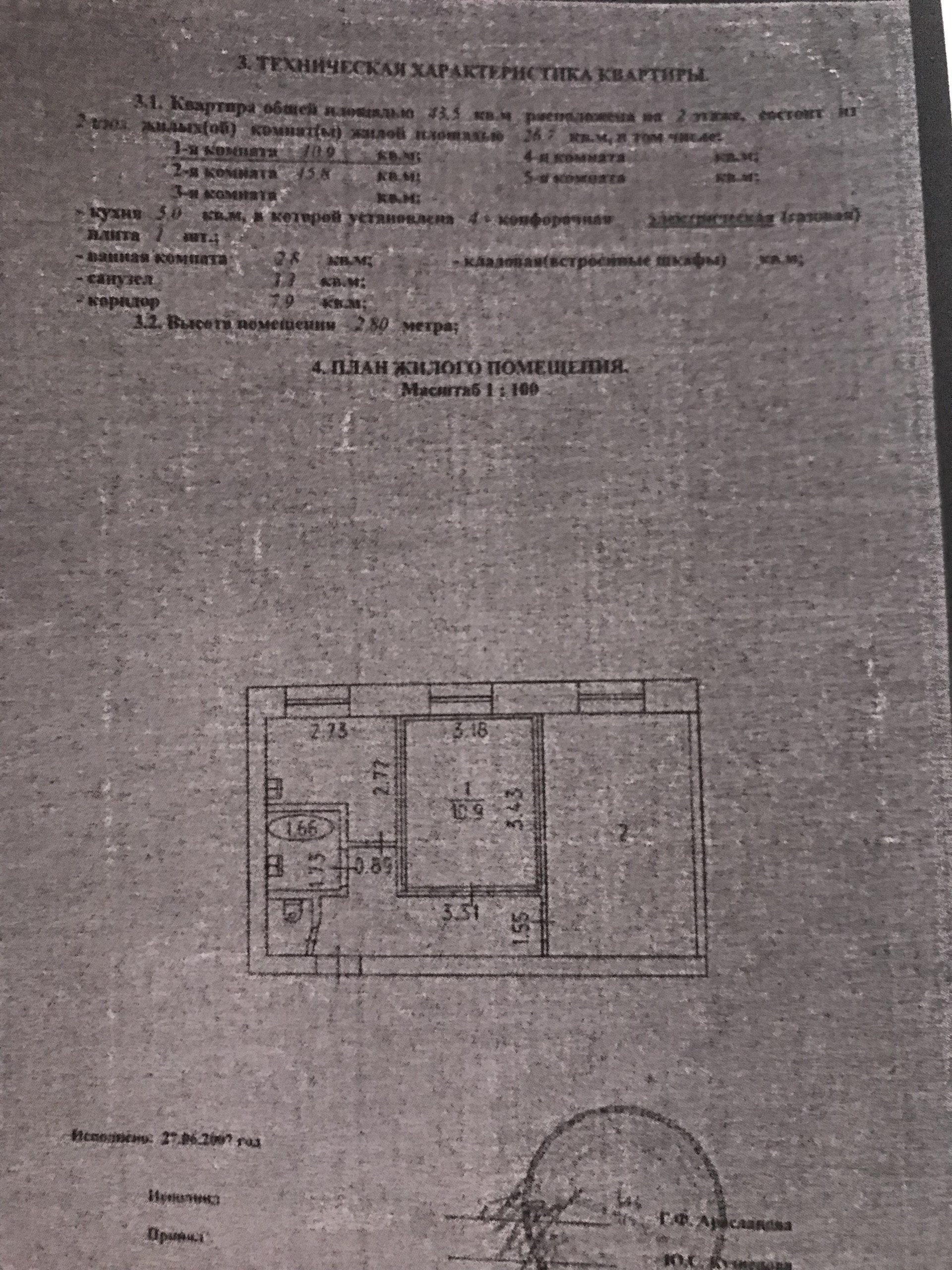 Жилая площадь 26.7 м2