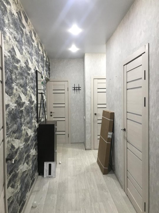 Новые межкомнатные двери , а так же новая входная дверь.Большие , новые пластиковые окна, натяжные потолки по всей квартире и в санузлах. На полах постелен линолеум .Замена всей проводки и сантехники в 2022 году,радиаторы биметалл. Новый Кухонный гарнитур оставляем . В ванной Плитка на полах и стенах, в туалете Плитка только на полу .