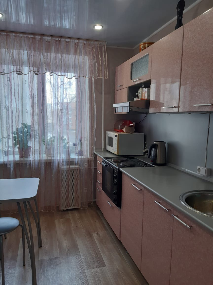 Квартира в хорошем состоянии: стеклопакеты, ламинат, натяжные потолки, санузел под кафель, новая входная дверь, поменяны трубы и электропроводка, остается кухонный гарнитур. Квартира светлая и теплая, восточная и западная стороны(лоджия на восток). Район с развитой инфраструктурой: школы 1,2,11; детские сады, вокзал.