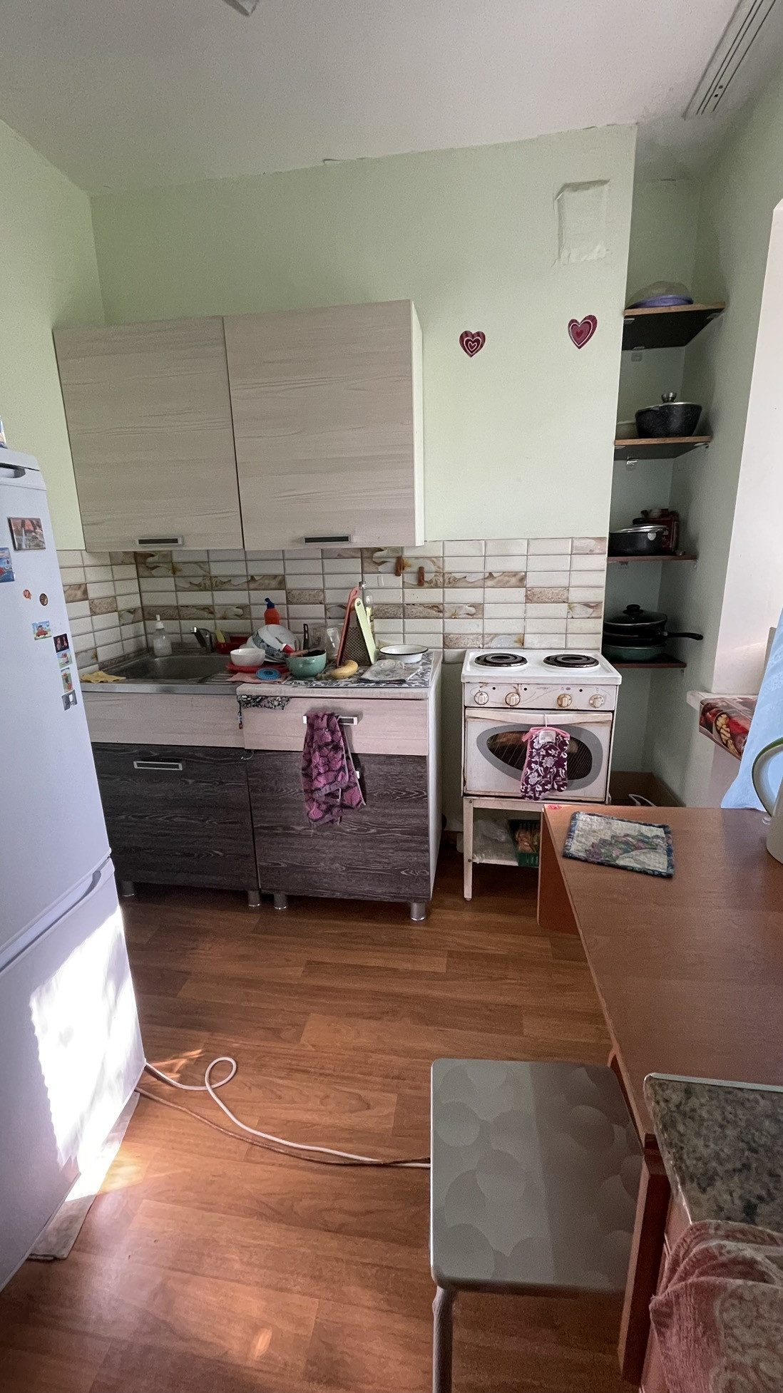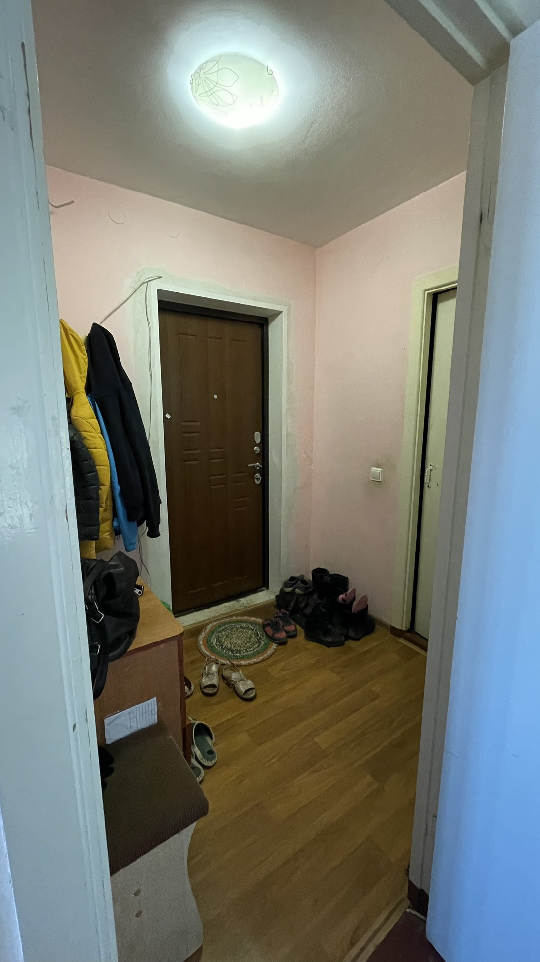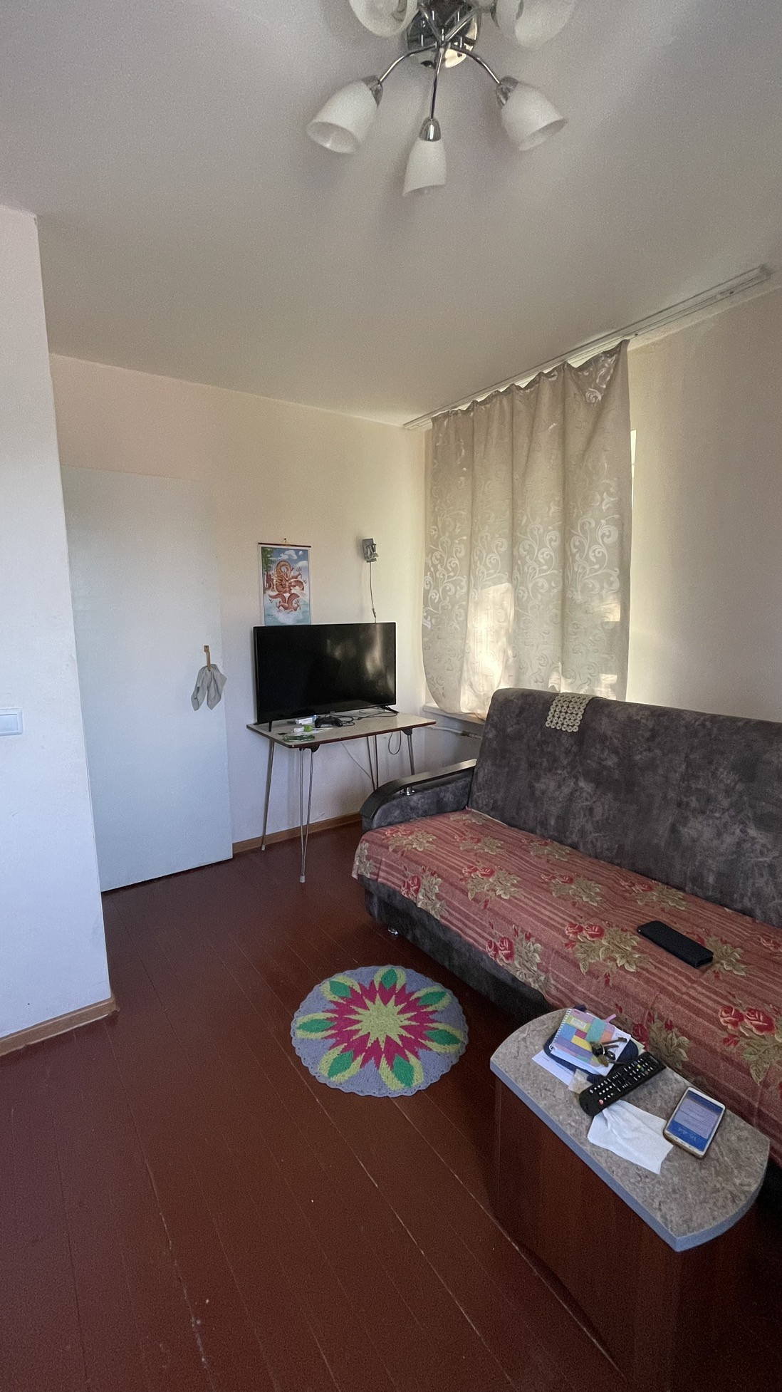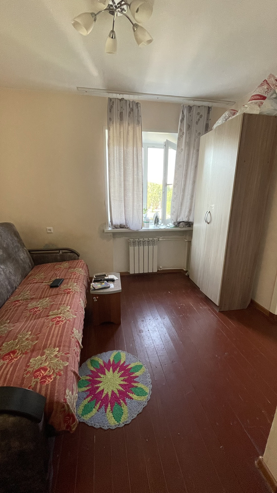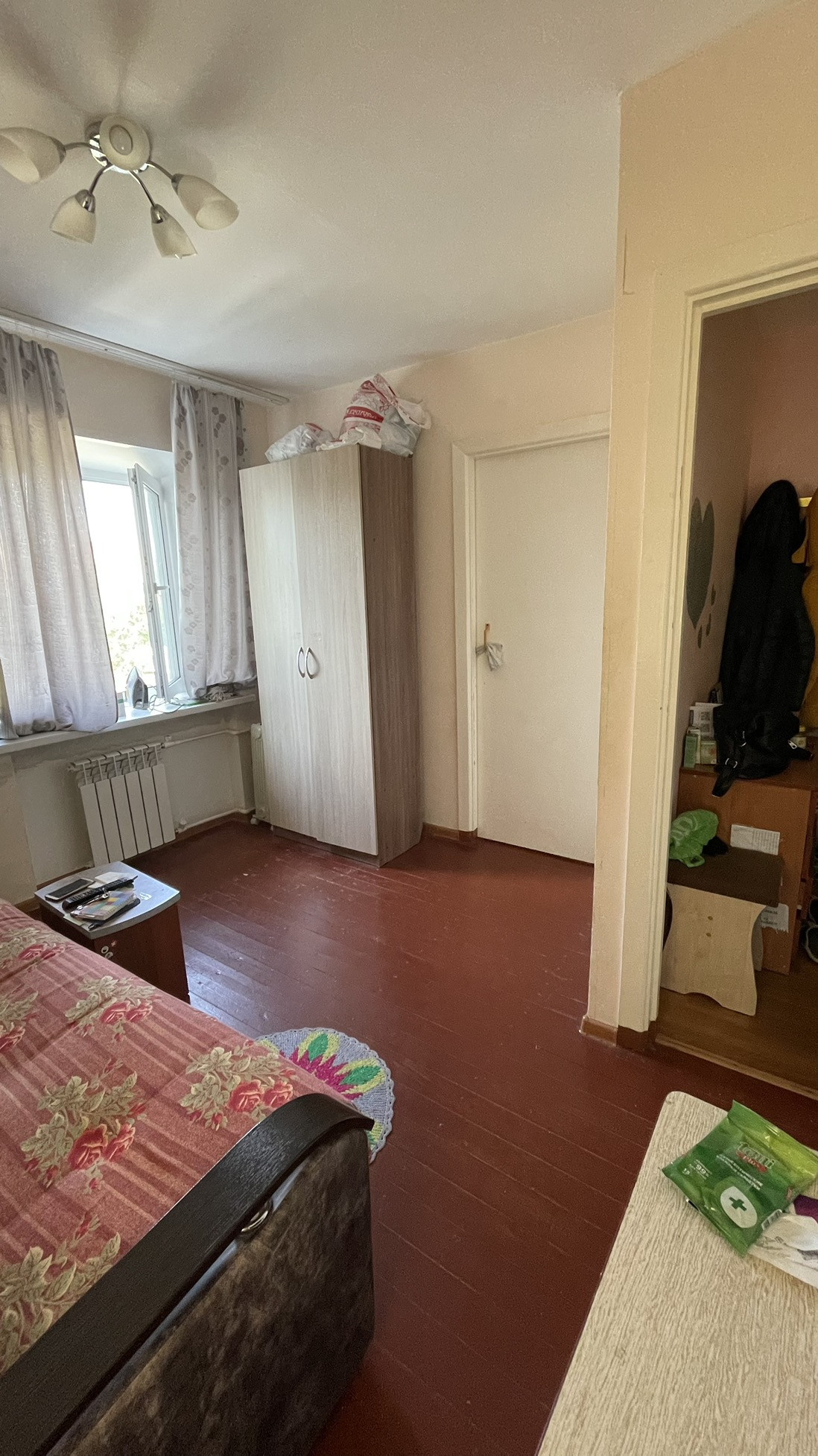 Очень компактная двухкомнатная квартира. Комнаты проходные, санузел совмещенный. Частично заменены окна на пластик. Один взрослый собственник.